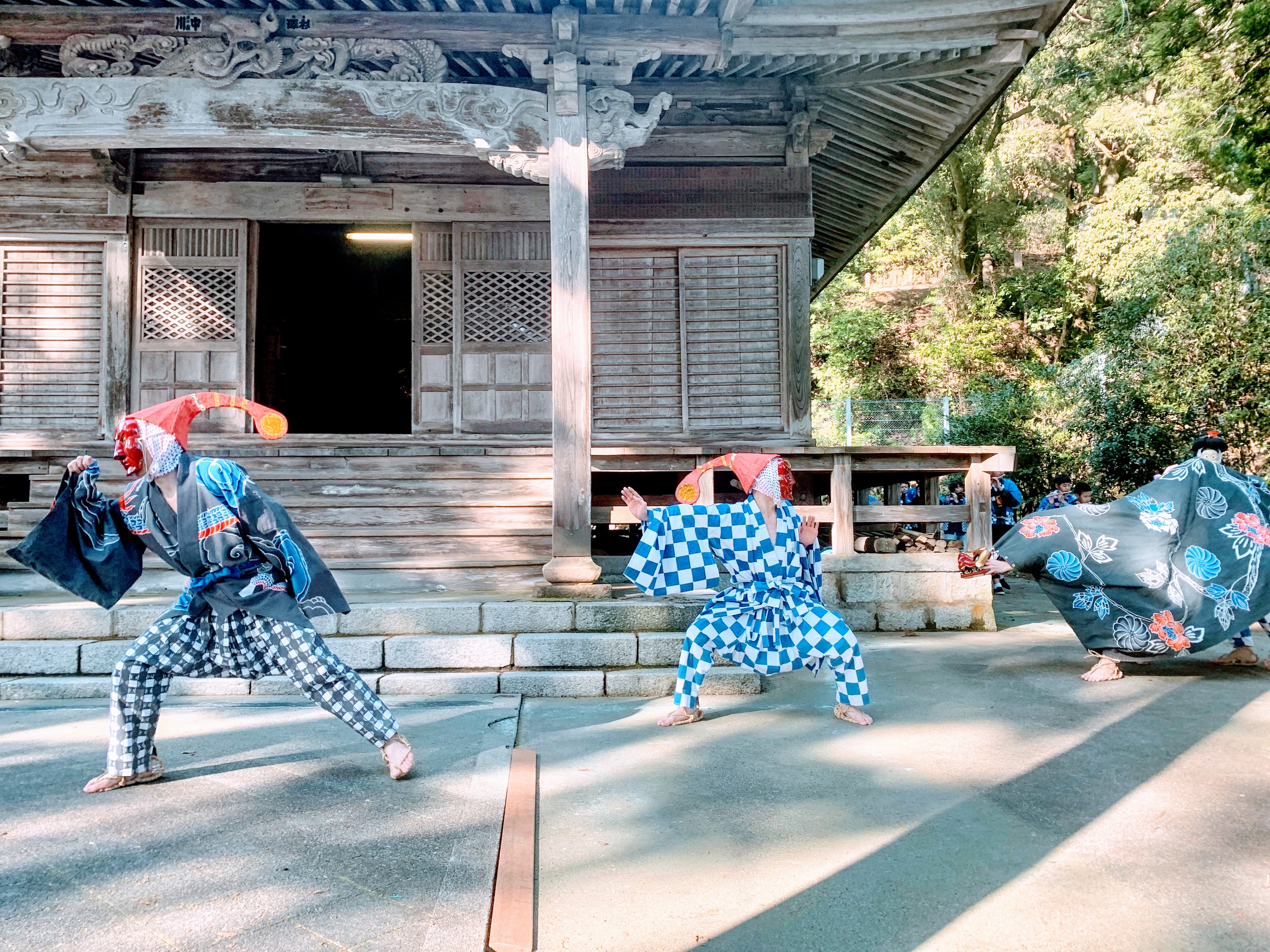 「小川寺の獅子舞」は、小川山千光寺に奉納される平安時代から続く古い形式を残した神仏混淆のお祭りです。神輿が観音堂の周りを7回半周るのですが、その際に天狗面、ババ面、獅子、アマネ面の面々が露払いをゆったりはんなり雅に行います。