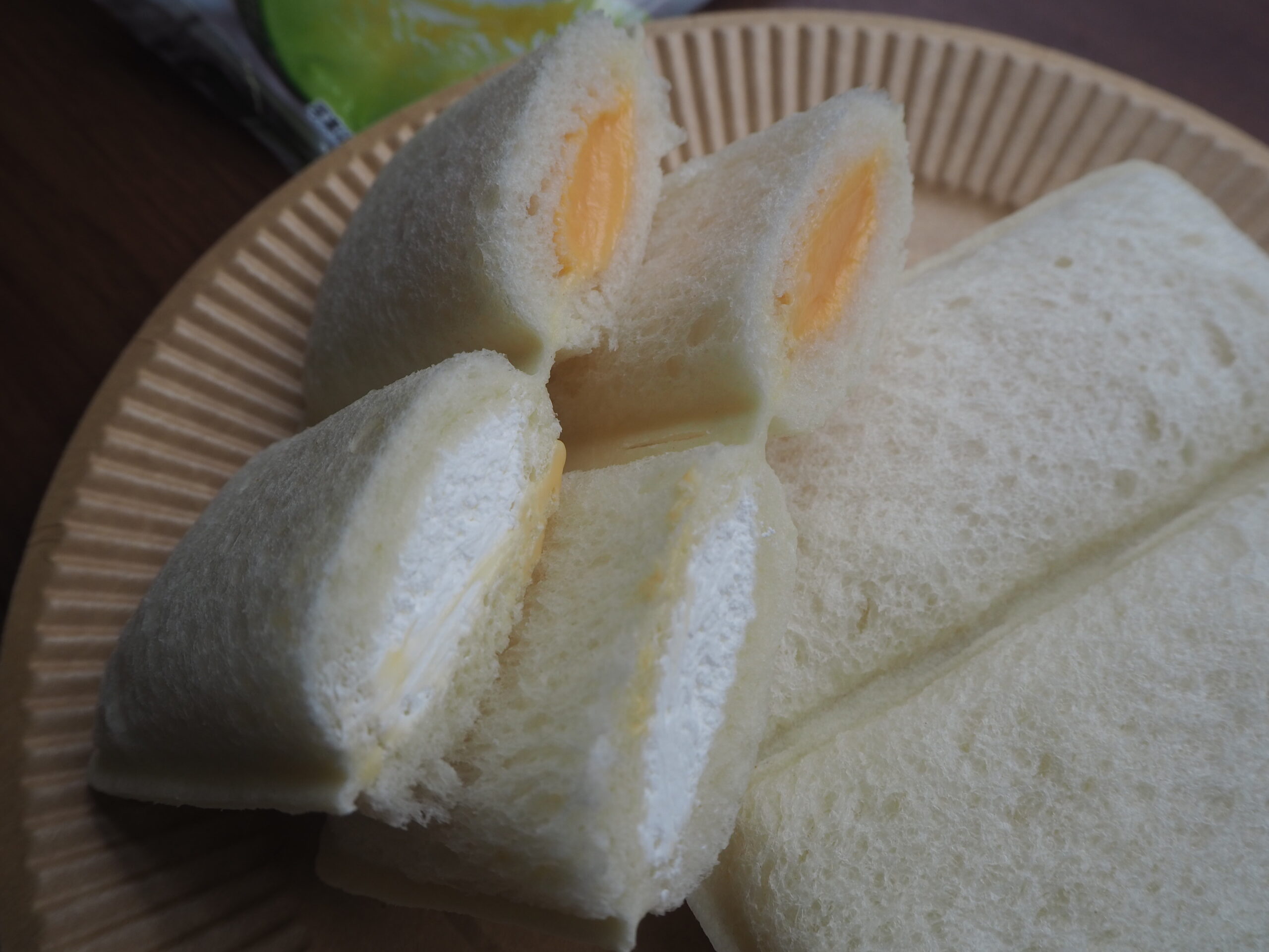 パンの左右に、北海道産メロンの果汁入りクリームと北海道産牛乳入りミルクホイップがそれぞれ入っている、この6月に発売されたばかりのスティック状のサンドイッチです。