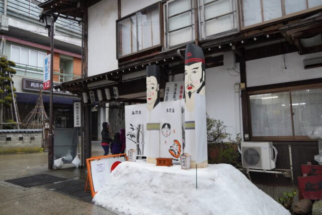 道祖神は男女一対の神様で、縁結びと子宝にご利益があるとされています。野沢温泉の道祖神祭りでは、会場に大きなたらいが置かれ、自分の道祖神と他の人の道祖神を交換することで縁結びにつながるとされています。