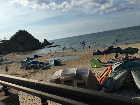 陸上のお墓は海に面しており、墓場の地面も砂地になっています。少々踊りづらいですが、これもまた地域性を反映した盆踊りという感じで面白いです。かつては浜辺近くの曹洞宗隣海院でも盆踊り大会が開催されていたそうです。