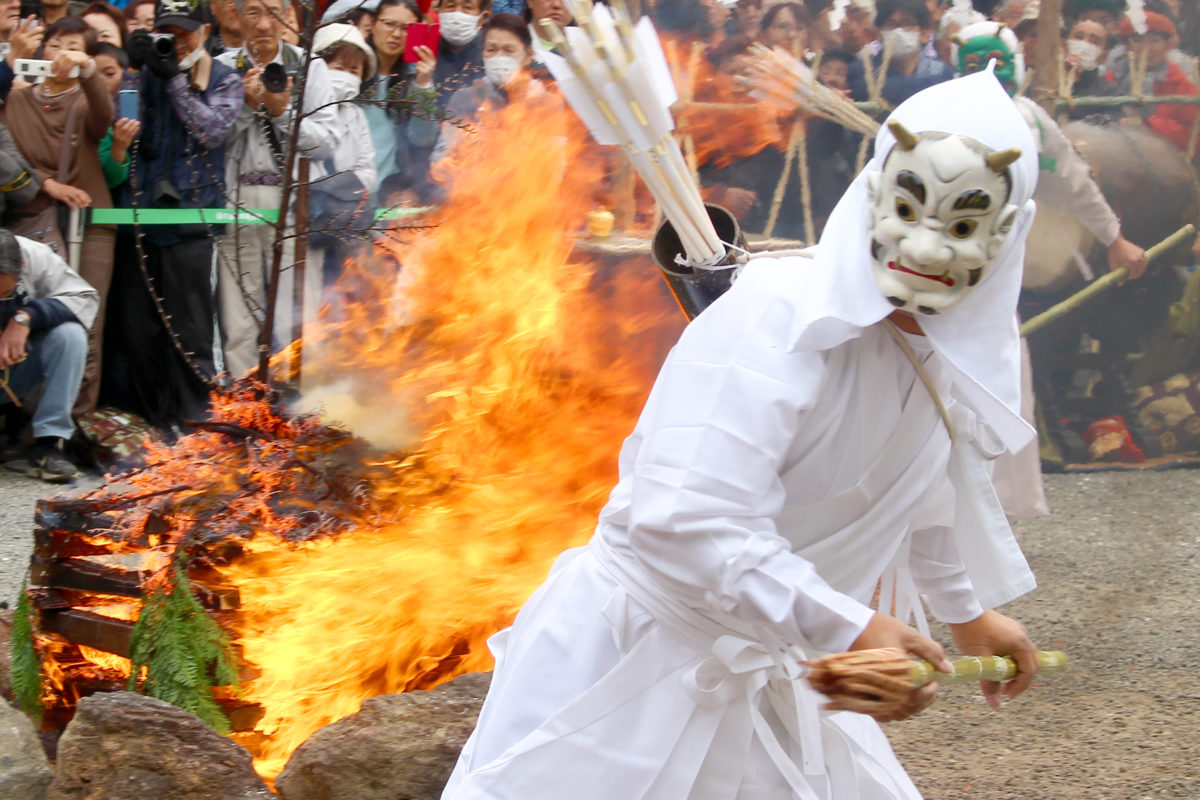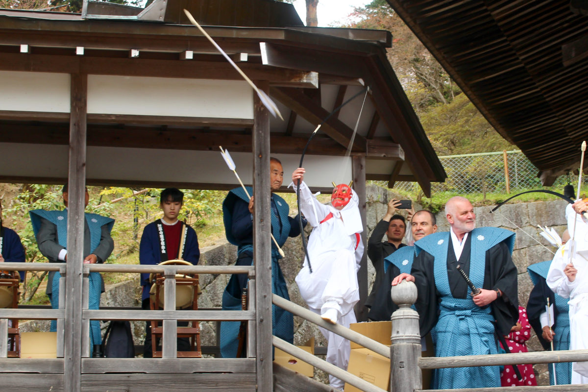 舞の後には破魔矢の奉納です。5色の顔を持つ鬼が49本の矢を放ちます。この矢を手に入れた人は、一年間幸せが訪れるんだとか。これはぜひとも矢をゲットしたいところです!