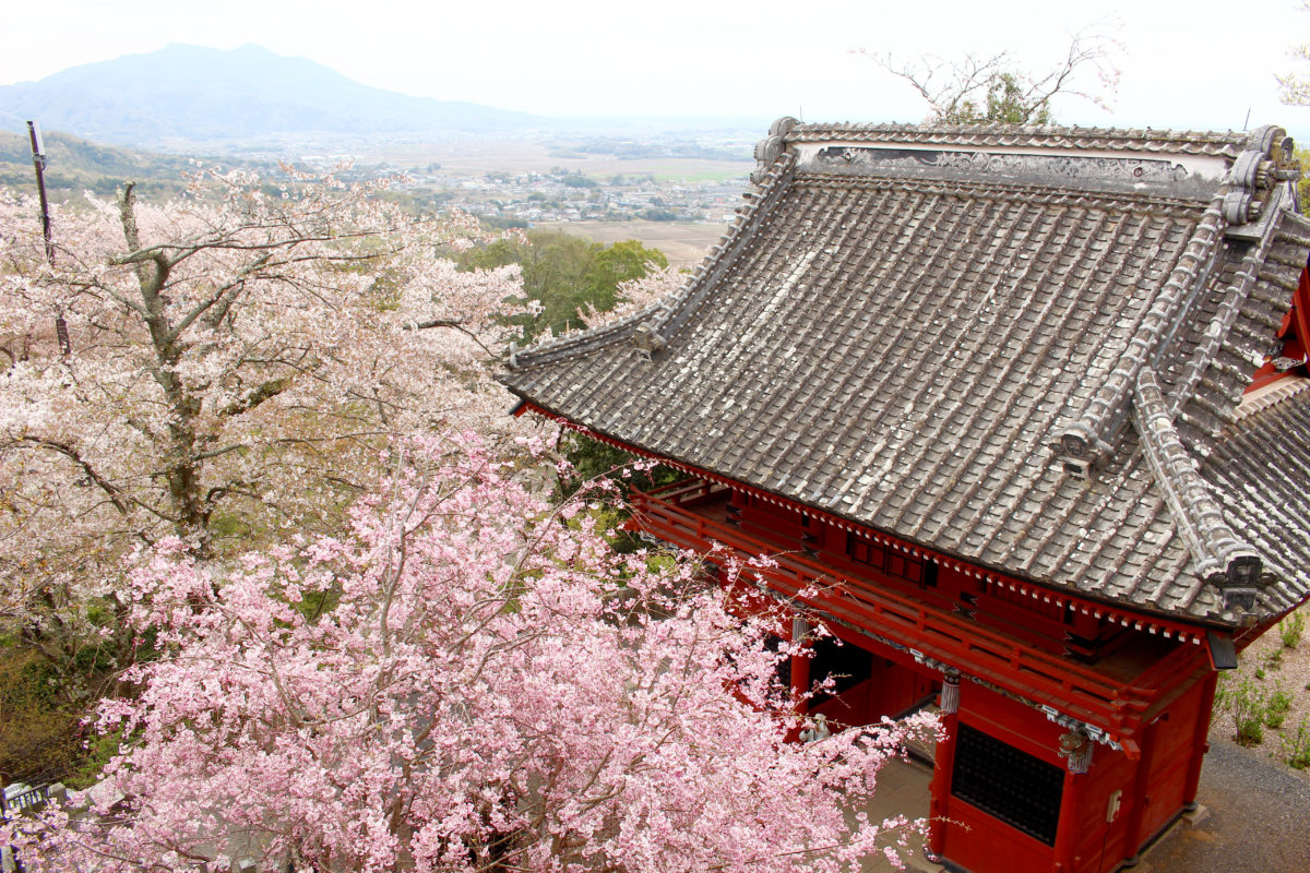 楽法寺のある雨引山からは茨城の平野部、そしてその奥に筑波山がきれいに見えます!春のお祭りと言うこともあり、桜と合わさった景色が美しいです。