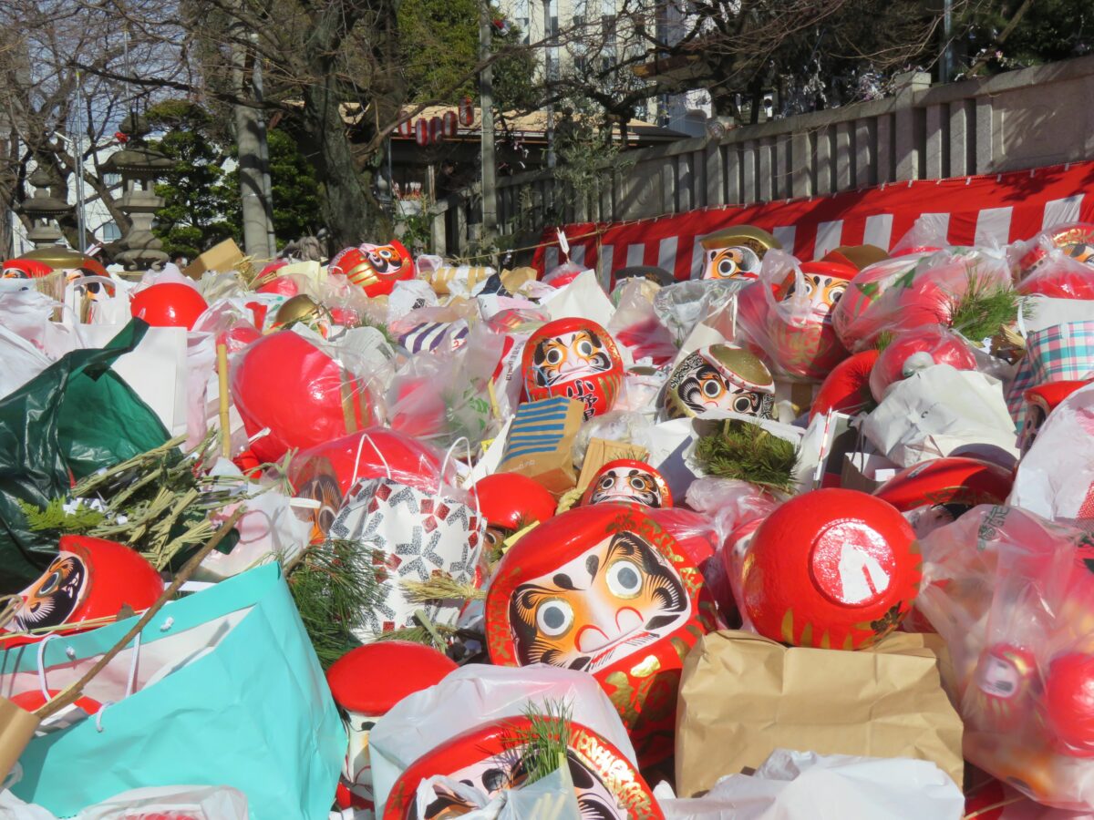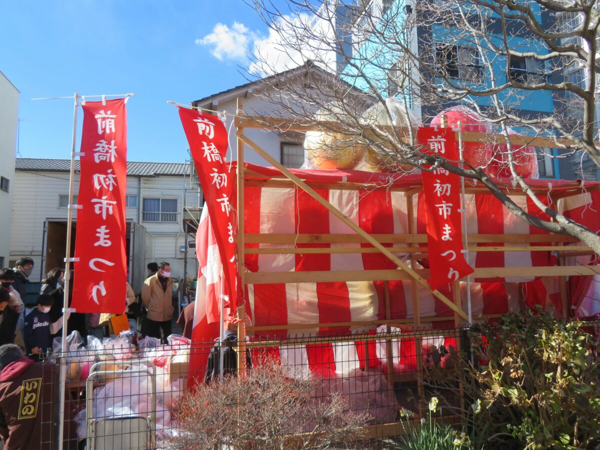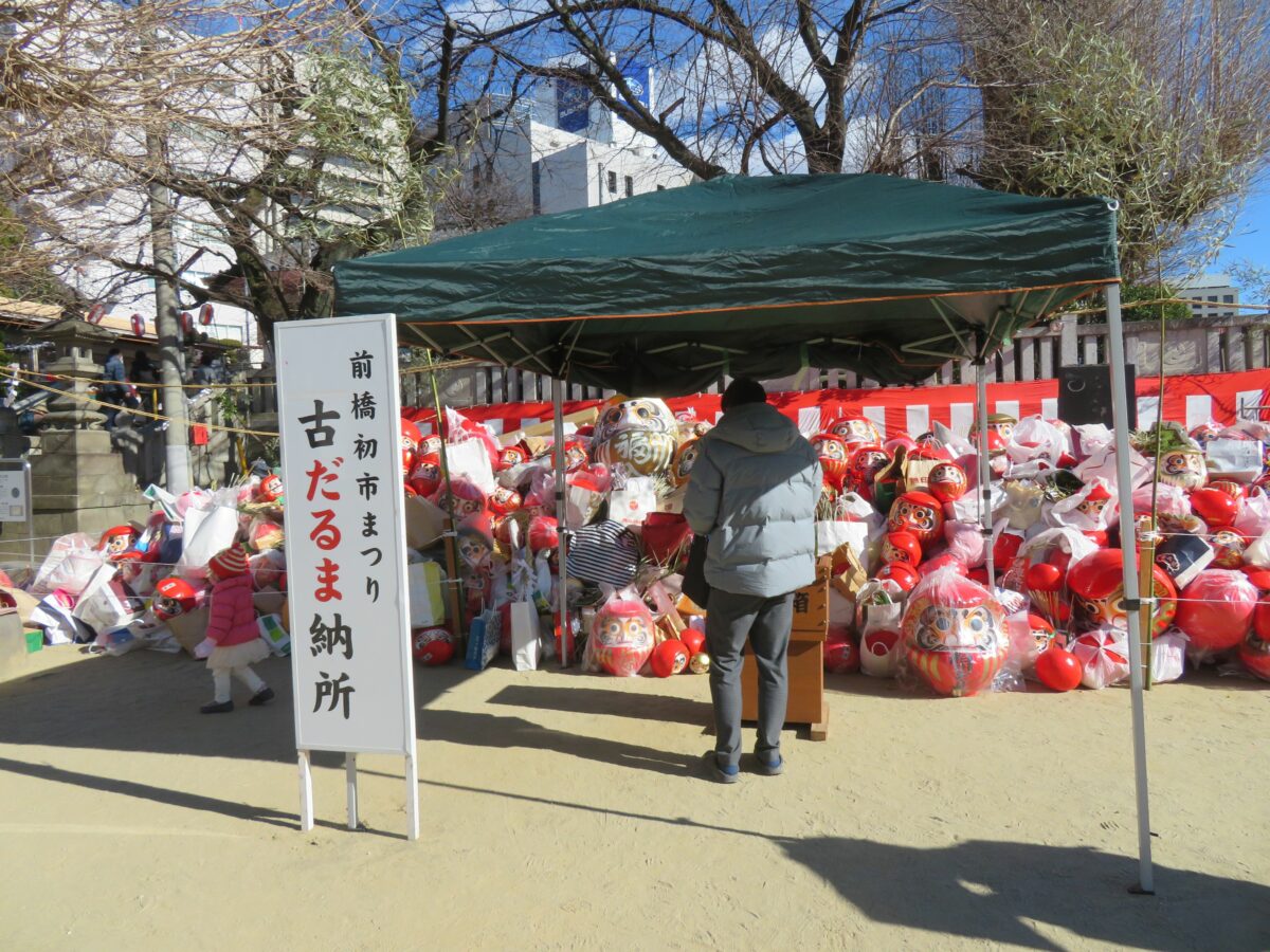 だるまは縁起物として古くから多くの人に愛されています。新年には全国各地でだるま市が開催されています。日本で最も多くのだるまが生産されている群馬県高崎市に接する前橋市では、毎年1月9日に前橋八幡宮を中心として「前橋初市まつり」が開催されています。2021年は新型コロナウイルス感染防止のため、規模を大幅に縮小して実施されました。