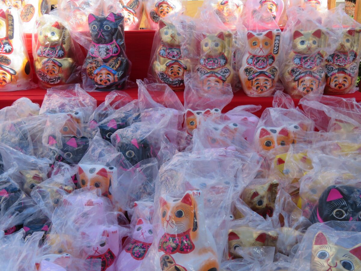 だるま市に並ぶ招き猫