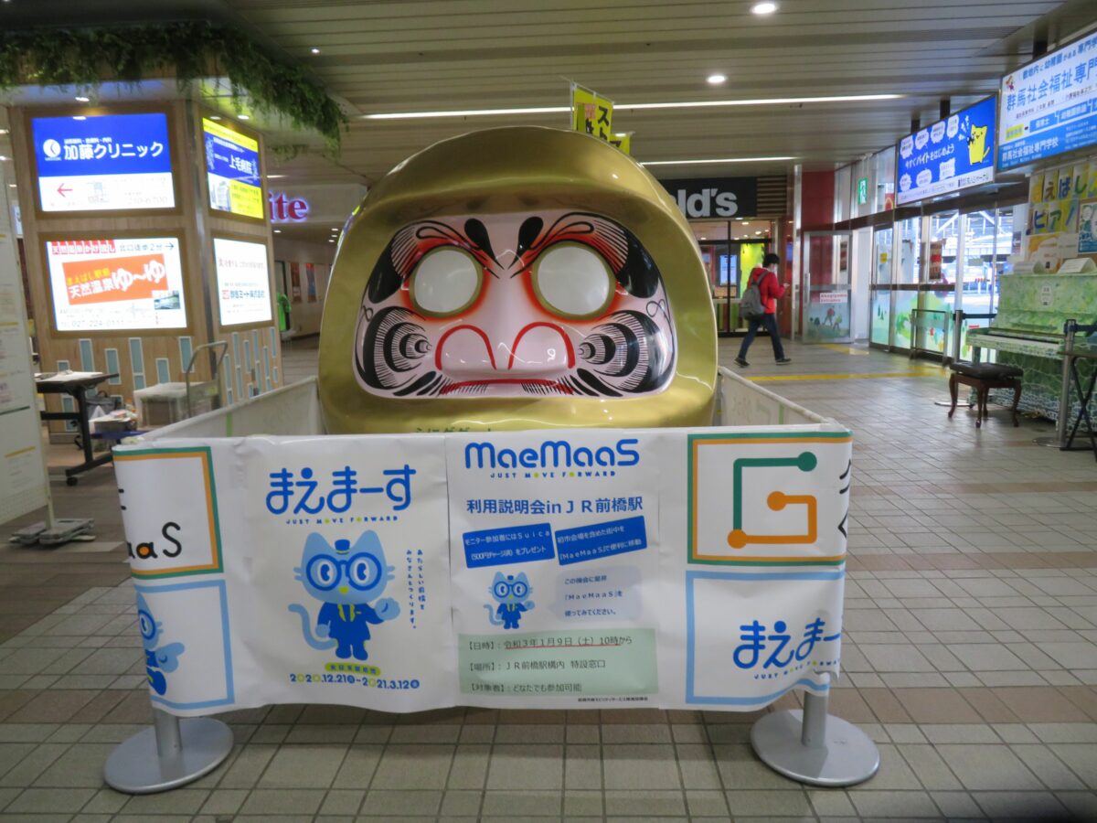 「前橋初市まつり」開催日にJR前橋駅に登場するだるま