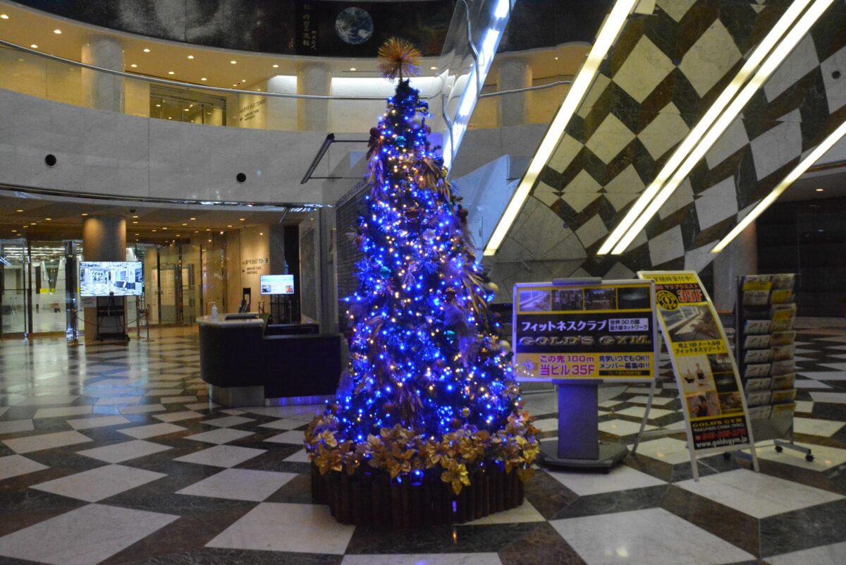 ワールド・ビジネス・ガーデンの館内に設置されるクリスマスツリー