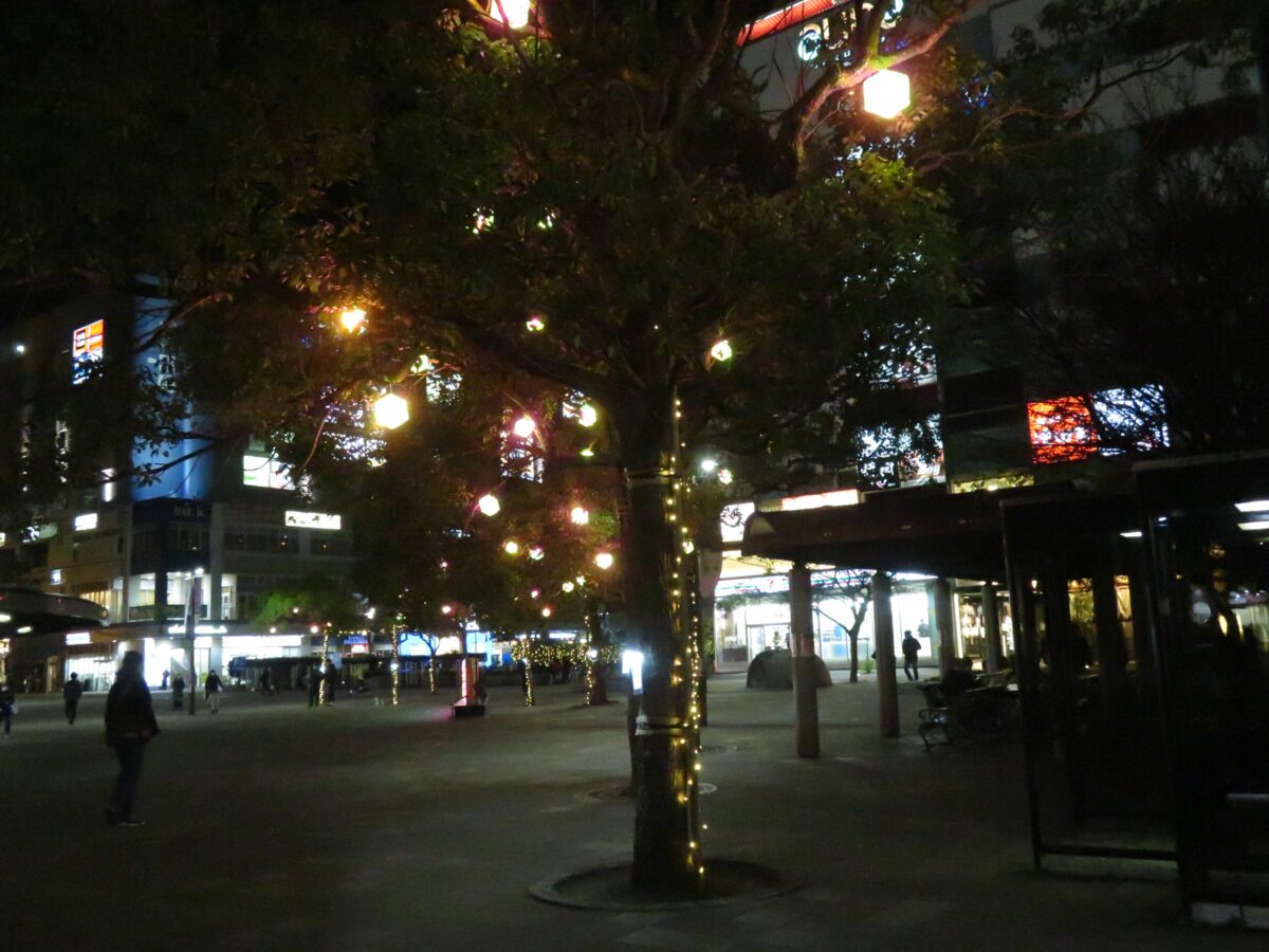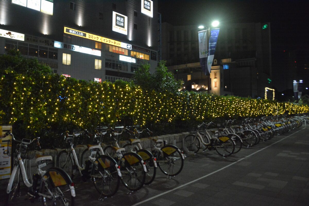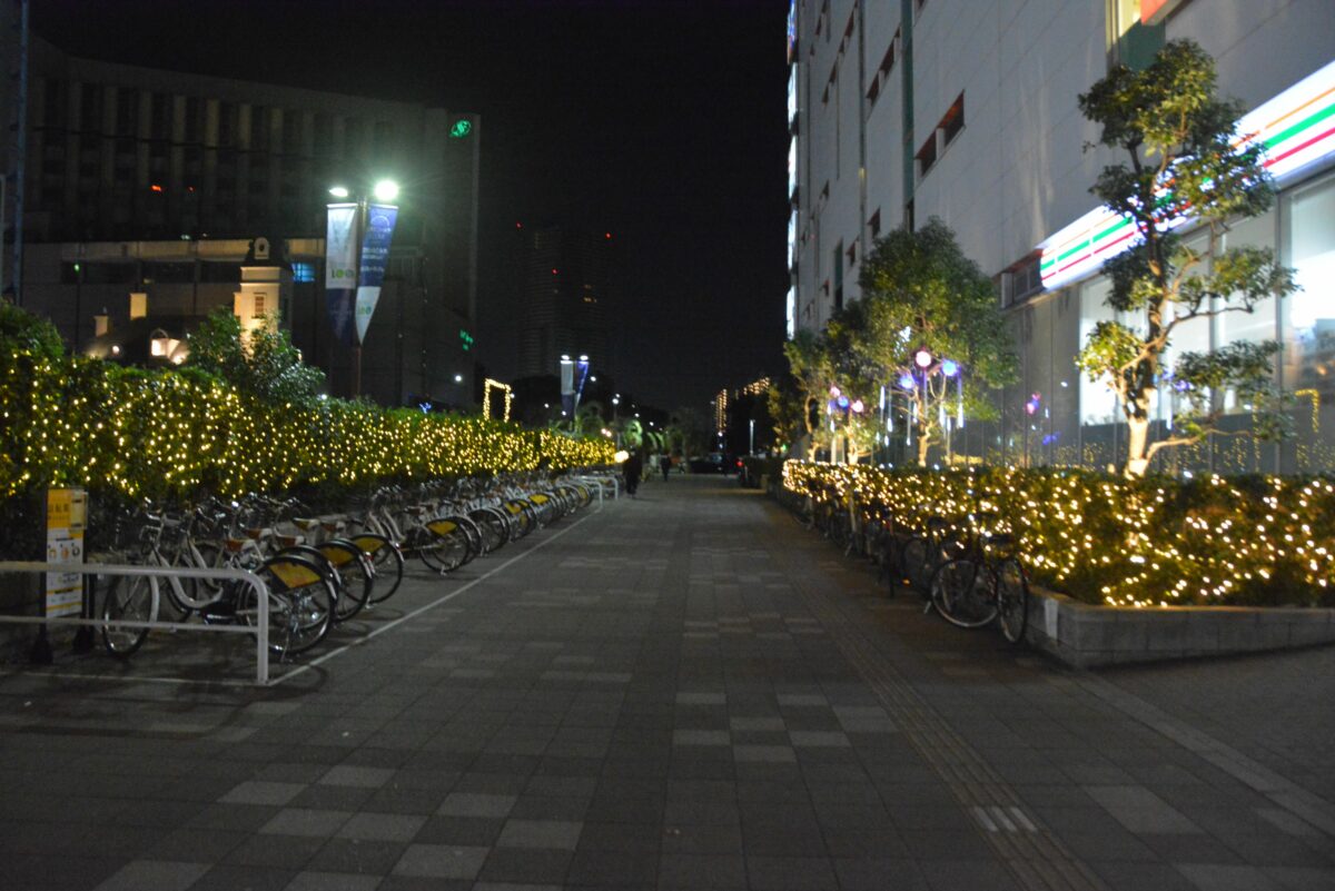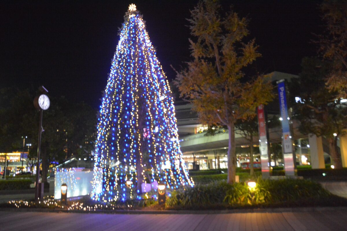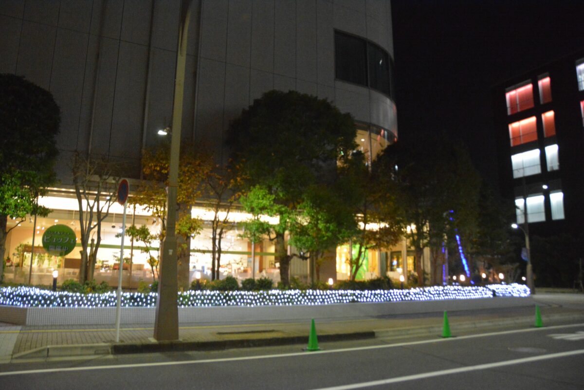 南口広場の西側に建つワールド・ビジネス・ガーデンの周囲もイルミネーションで彩られます。