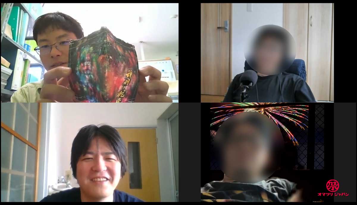 左上:齊木氏 右側:花火仲間 左下:蛭田(ライター) ※市川三郷町の名産品である和紙で作られた暑さ対策にもなるマスクをPR