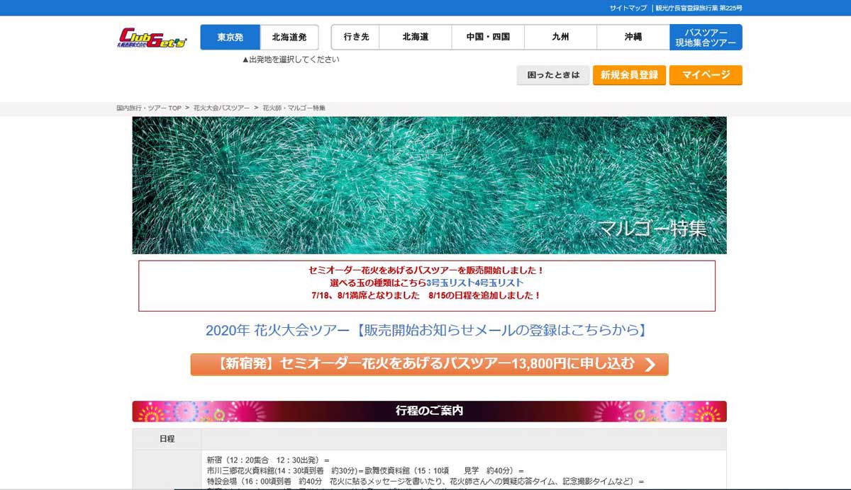 クラブゲッツ セミオーダー花火をあげるバスツアー