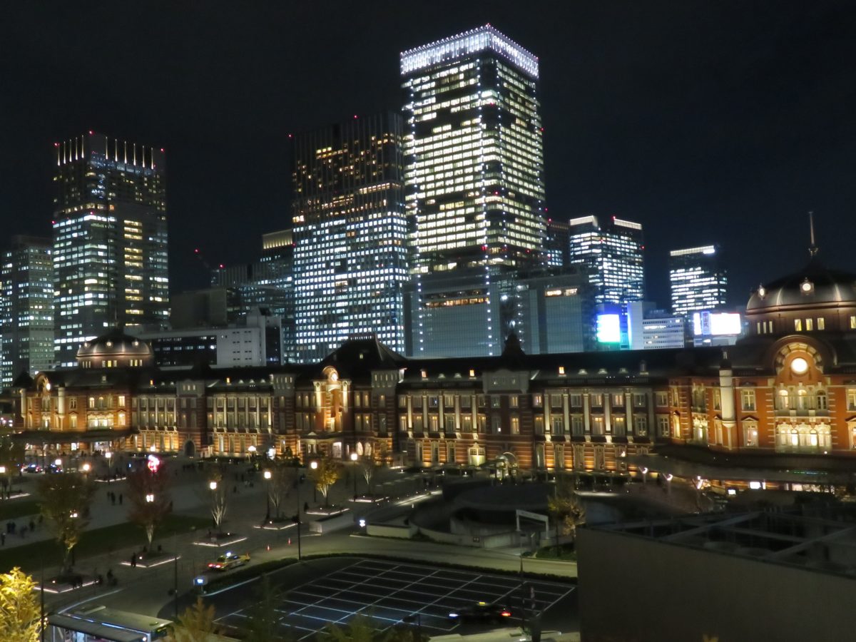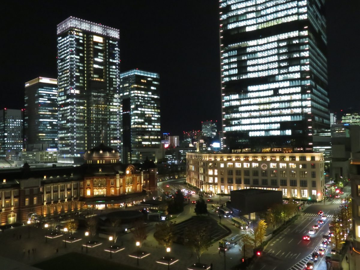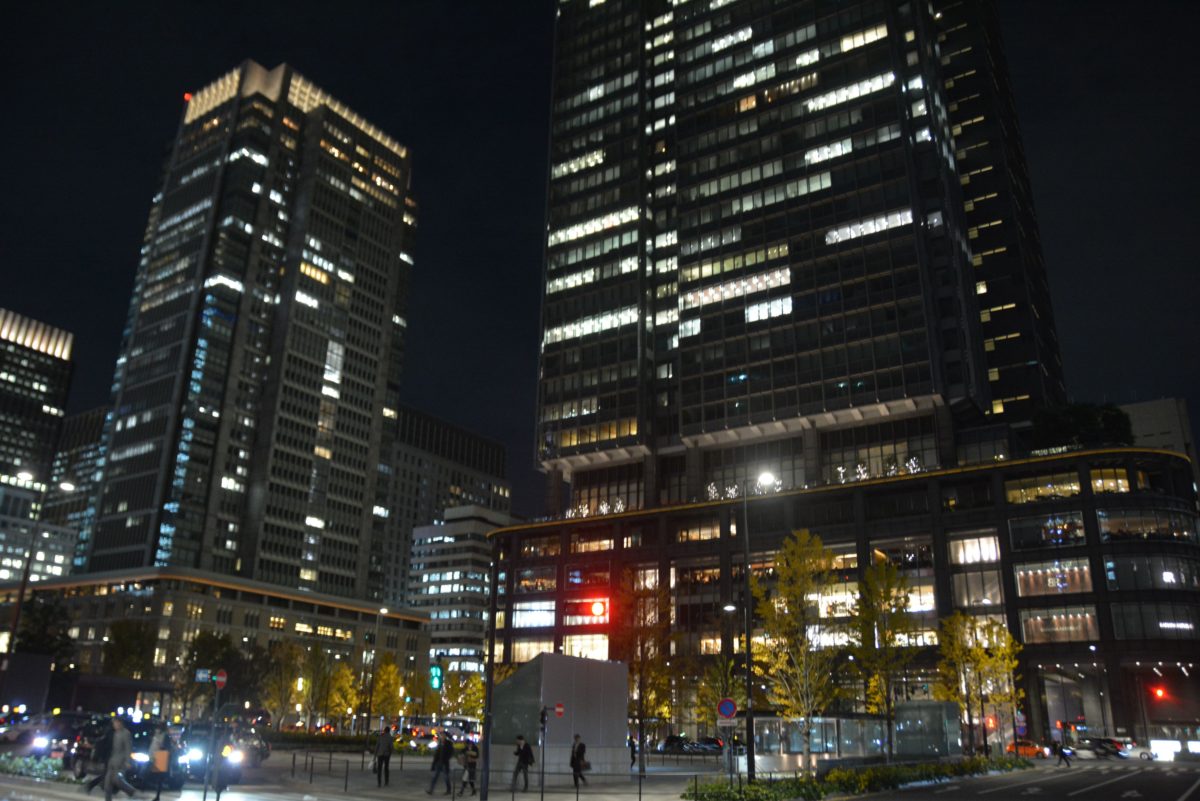 東京駅丸の内中央口の正面に向かい合って立つ丸ビルと新丸ビル