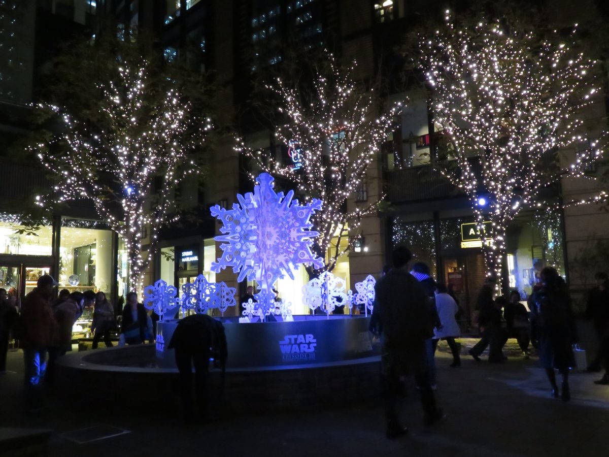 丸の内仲通り沿いの丸の内ブリックスクエア、国際ビル、二重橋スクエアにもスター・ウォーズの世界が広がります。丸の内ブリックスエアの雪の結晶のオブジェ、国際ビルのサンタ姿のR2-D2のオブジェ、二重橋スクエアのディスプレイも見逃すことはできないでしょう。