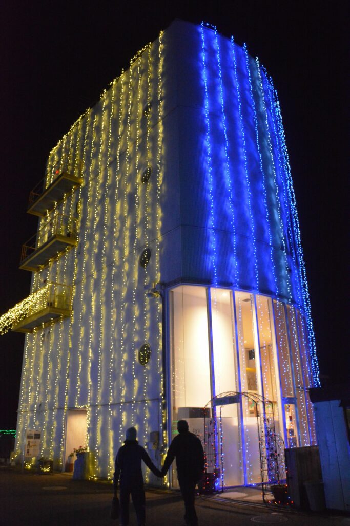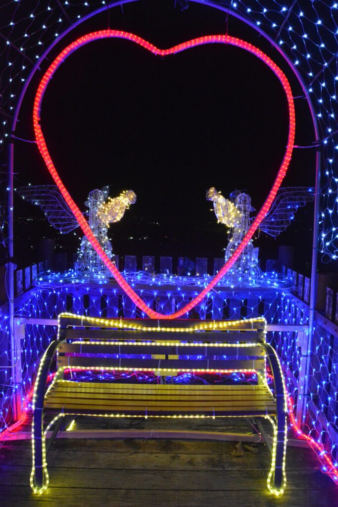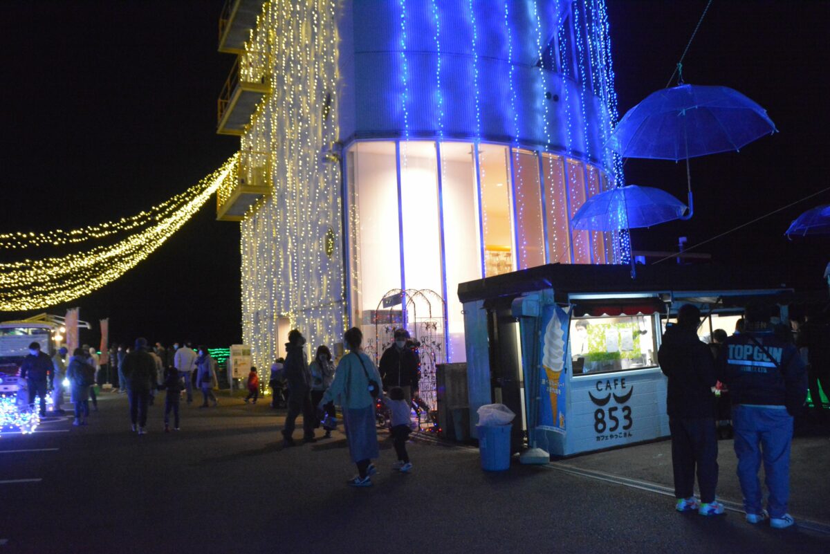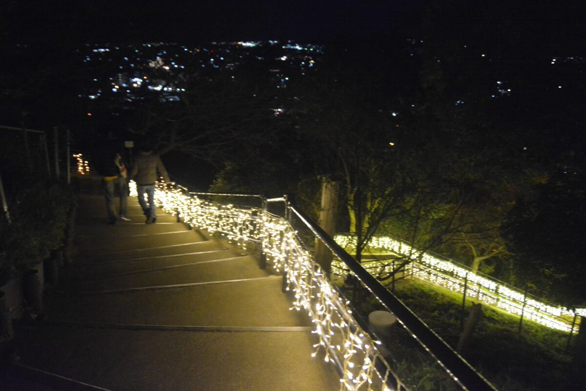 広場の南斜面の展望台もイルミネーションで鮮やかに輝き、絶好のフォトスポットです。