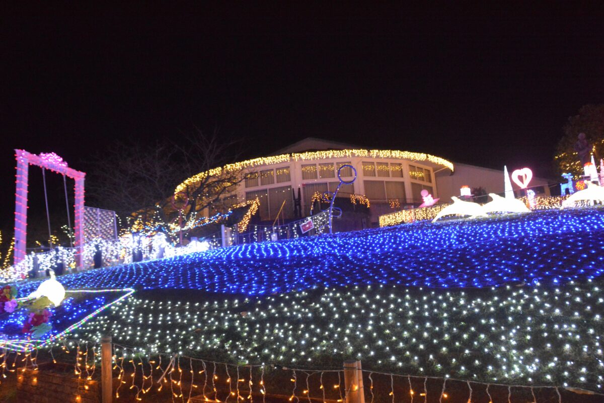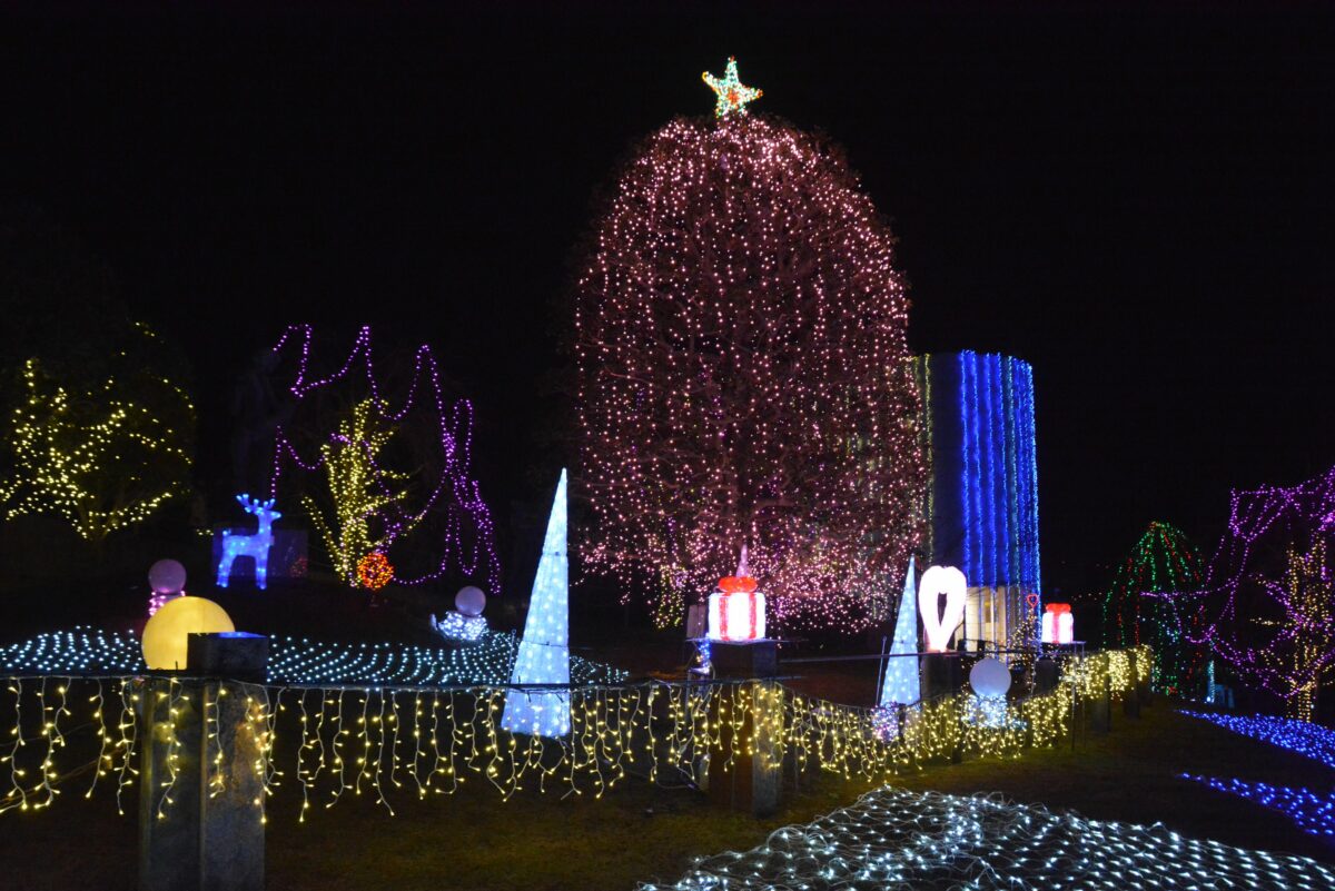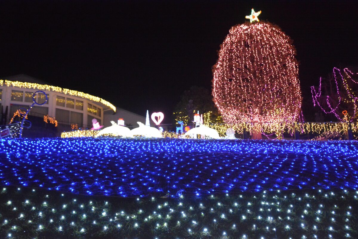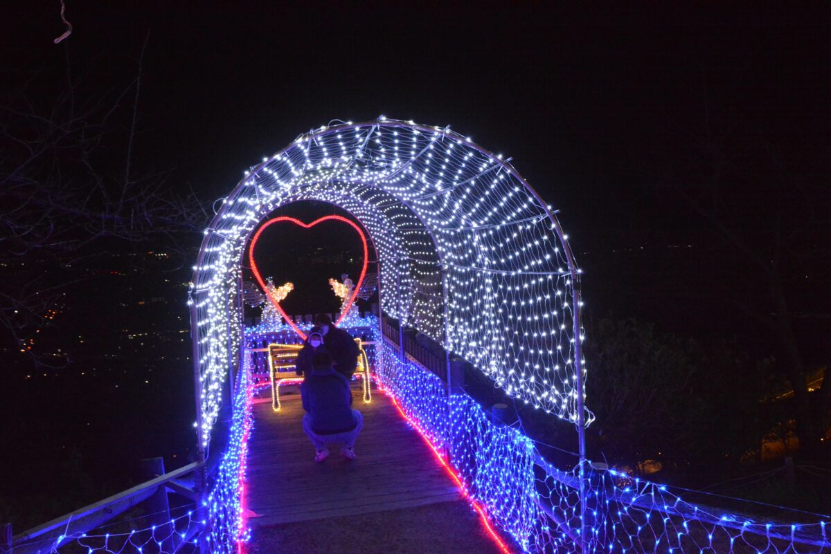 神奈川県松田町の北部に聳える松田山の南斜面を整備した西平畑公園では、例年クリスマス前に「松田きらきらフェスタ」が開催されます。約18万球にも及ぶイルミネーションが園内を豊かに彩ります。