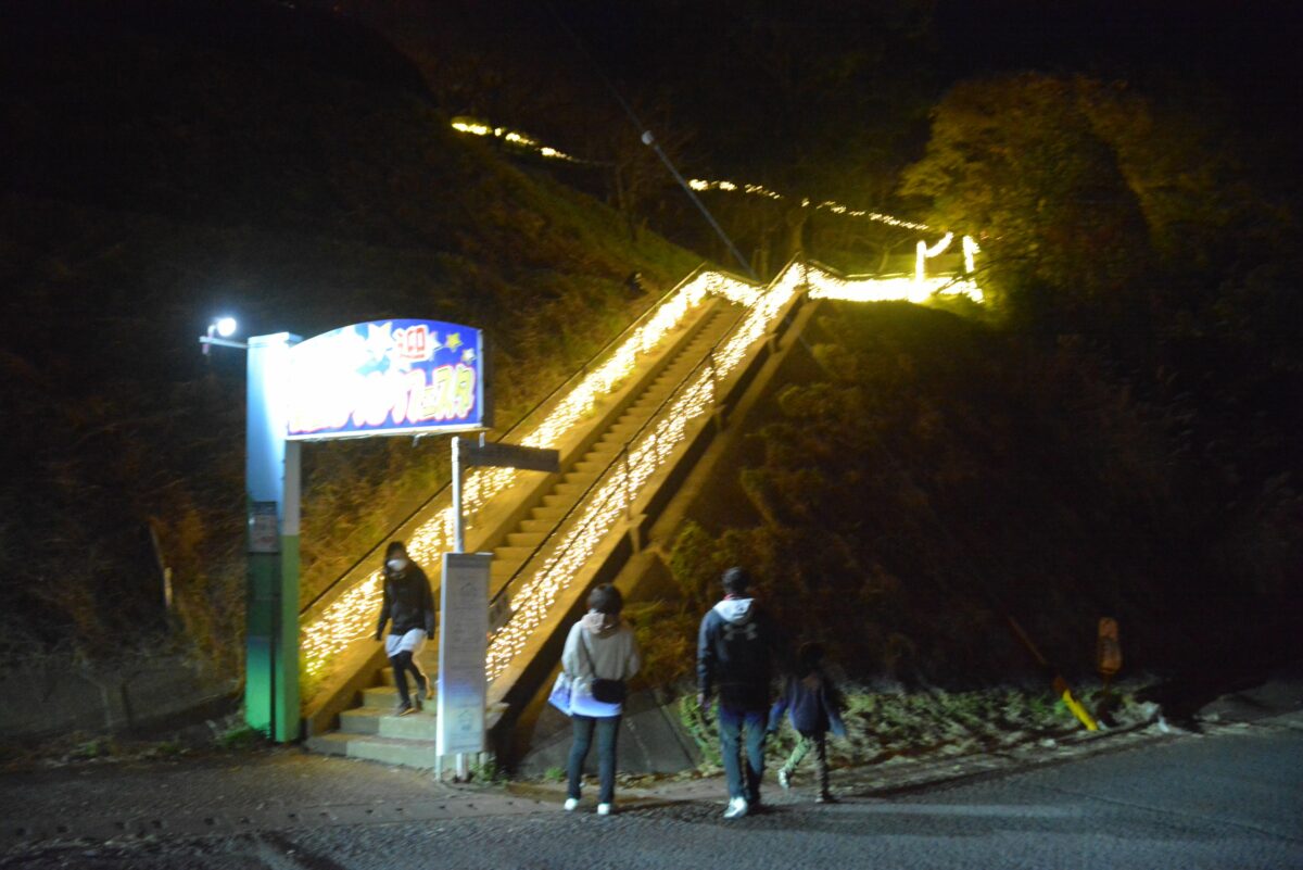 「松田きらきらフェスタ」のメイン会場となるのは、神奈川県松田町の北部に聳える松田山の標高約568メートルの斜面を整備した西平畑公園です。公園には駐車場が完備していますが、公共交通機関を利用して訪れる場合、麓から約350段の階段を上らなければなりません。