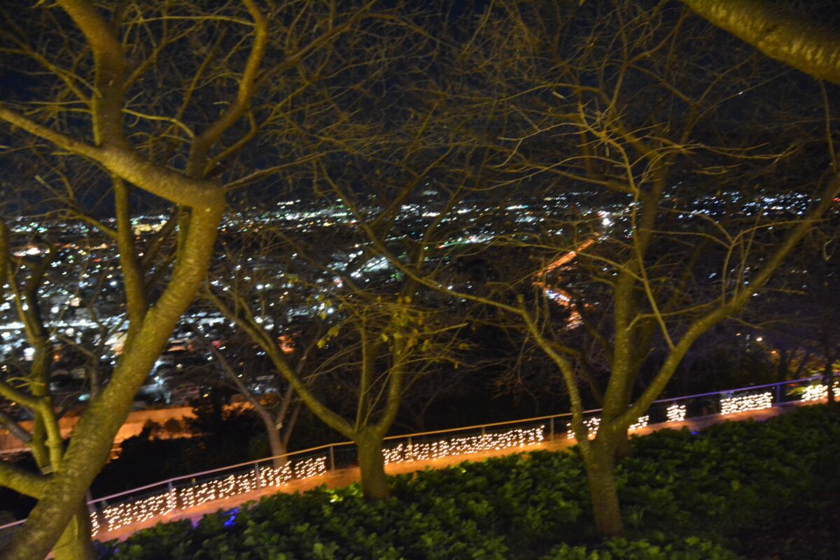 「松田きらきらフェスタ」の期間中には松田山は鮮やかなイルミネーションで彩られますが、西平畑公園からは眼下に足柄平野の夜景が広がります。