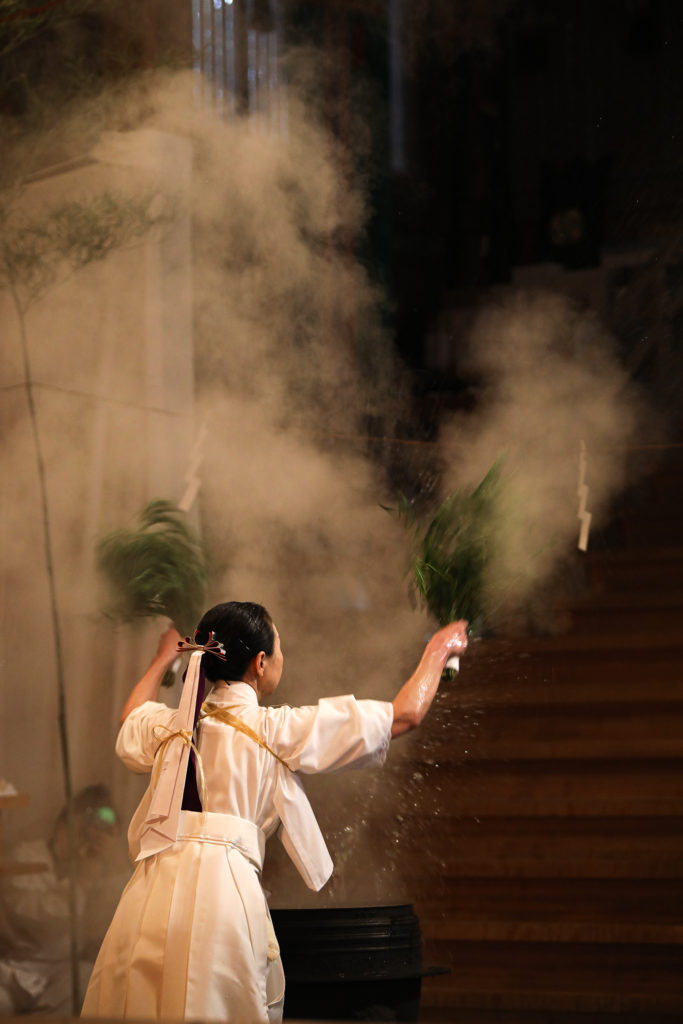 祝詞奏上のあとは無病息災や五穀豊穣を願う「湯立神楽神事」がはじまりました。
