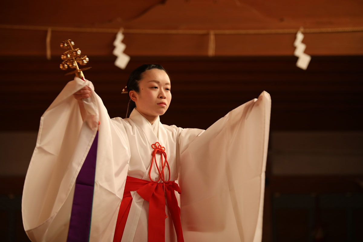 巫女さんの神楽や伊勢流の獅子舞など、いくつかの種類があり、