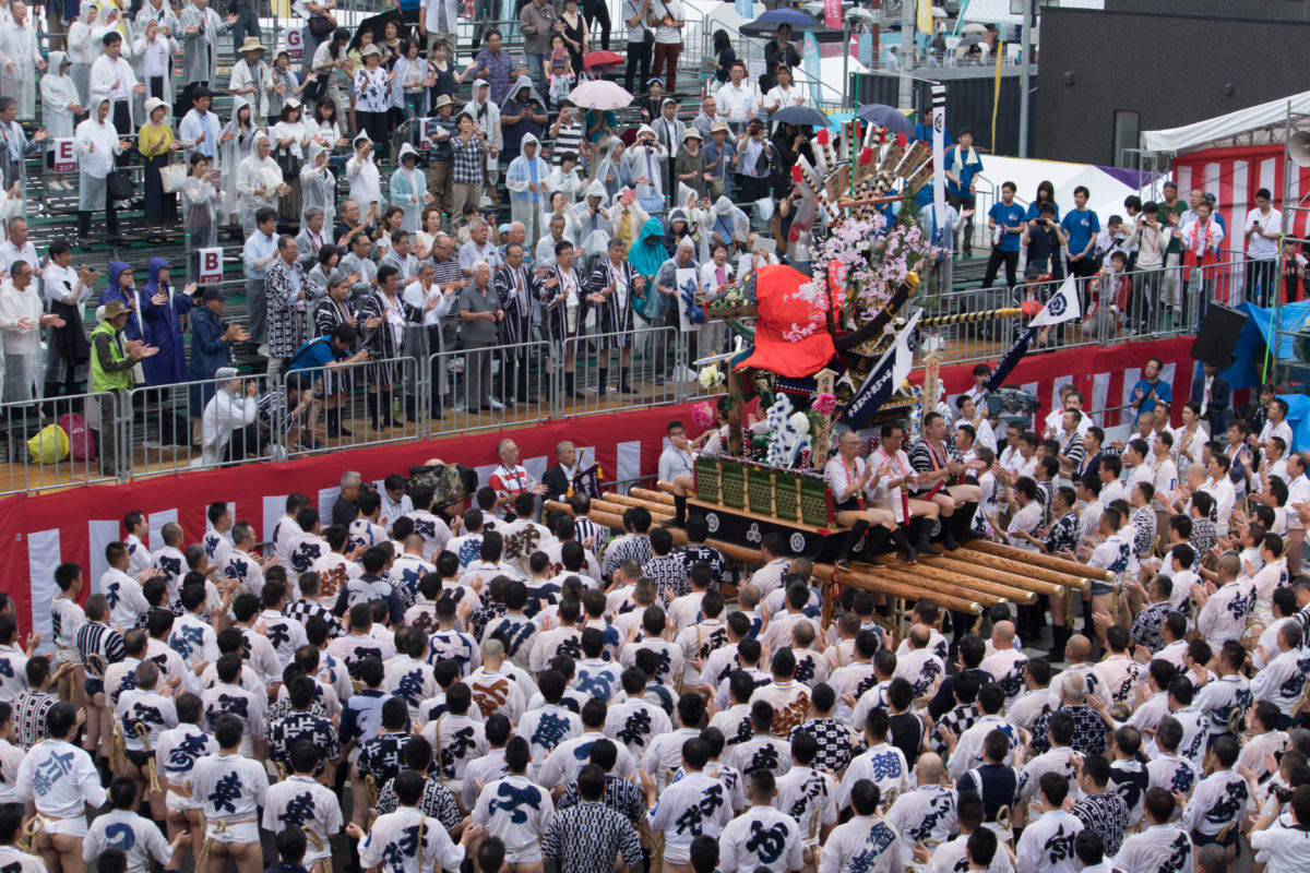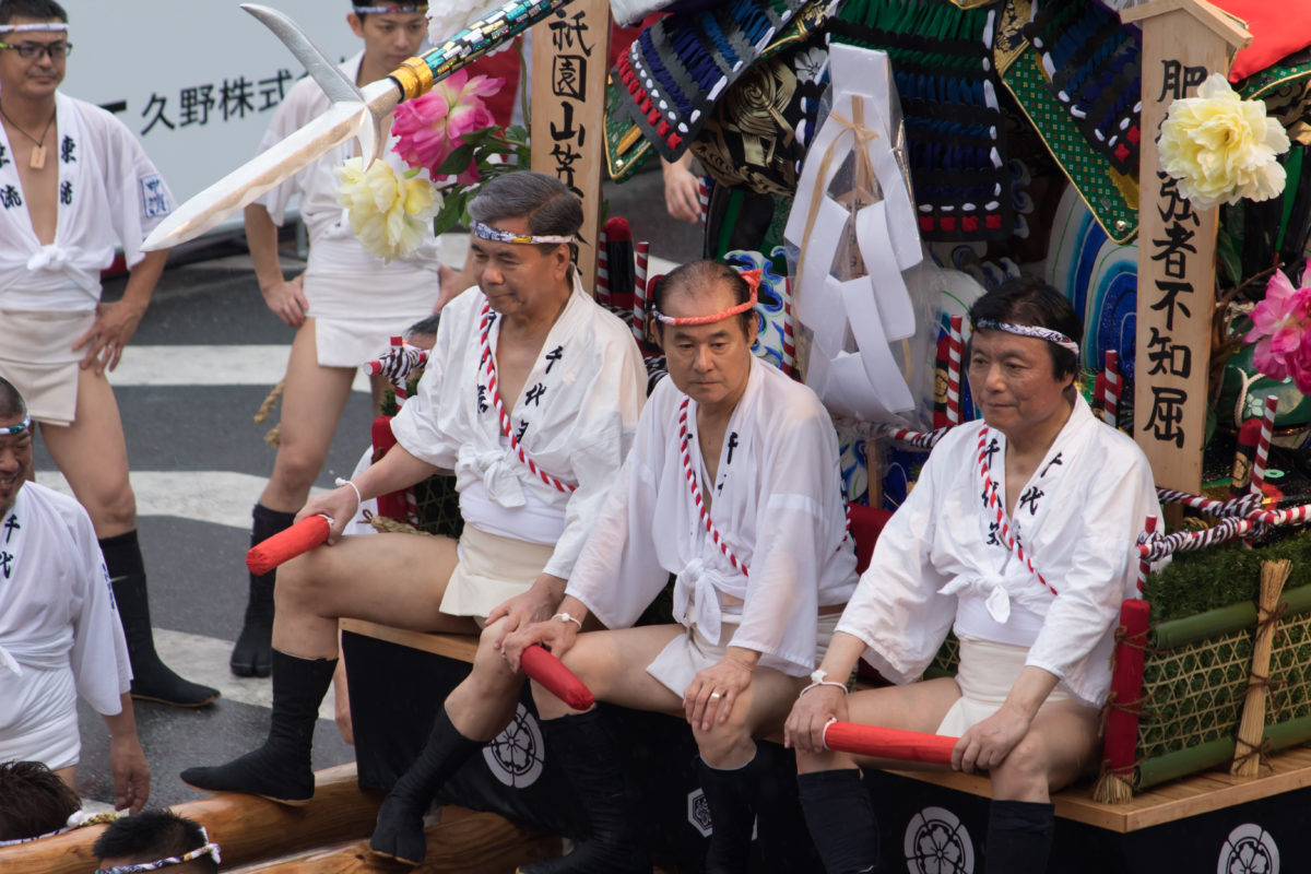 舁き山の標題は熊本の名武将「加藤清正」をテーマにした「肥後(ひごの)強者(つわもの)不屈(くっするを)知(しらず)」