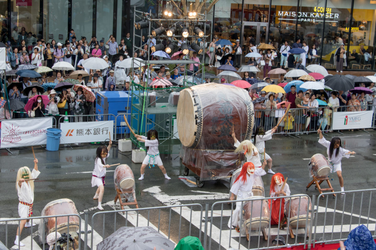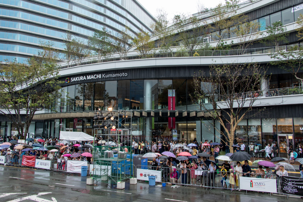 祭り集結のメイン会場は、2019年9月14日に熊本市の中心部の桜町にオープンしたばかりのファッション・雑貨・コスメ・飲食など149店舗が集まる「サクラマチクマモト」の目の前とあって、祭り集結の二日間は大勢の人で賑わいました。