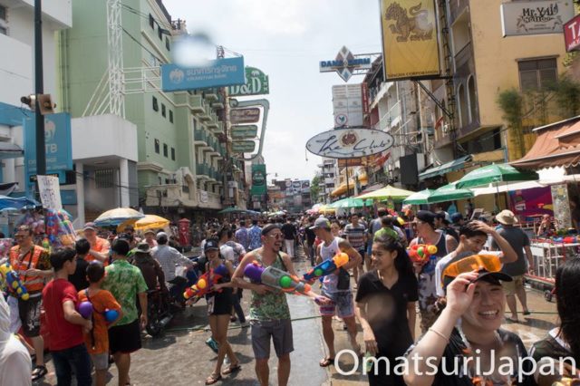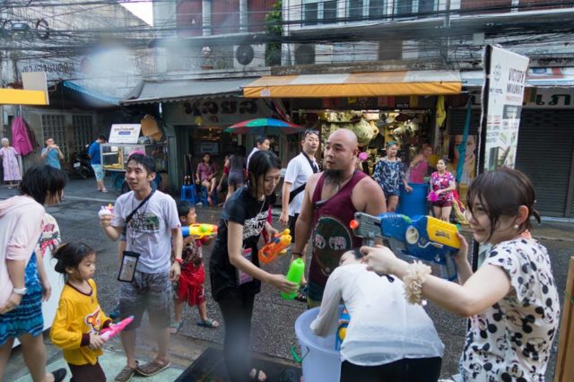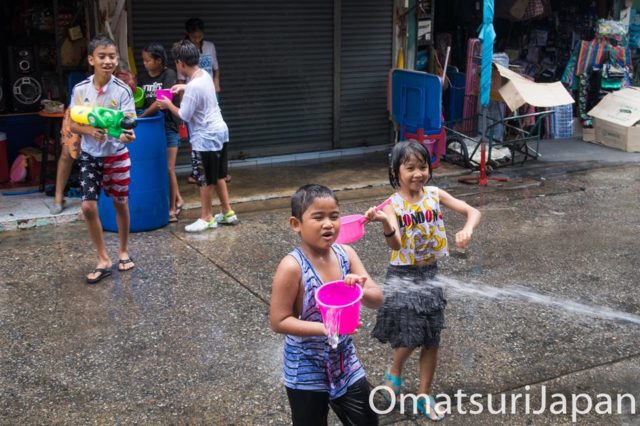 ソンクラン (สงกรานต์) とはタイの旧正月でのことで、純粋に新年のお祝いであり、もともとは家族が集って共同で仏像のお清めを行ったり、年輩の家族のお清めを行う期間だったのに、いつからか単なる水の掛け合いに発展した。