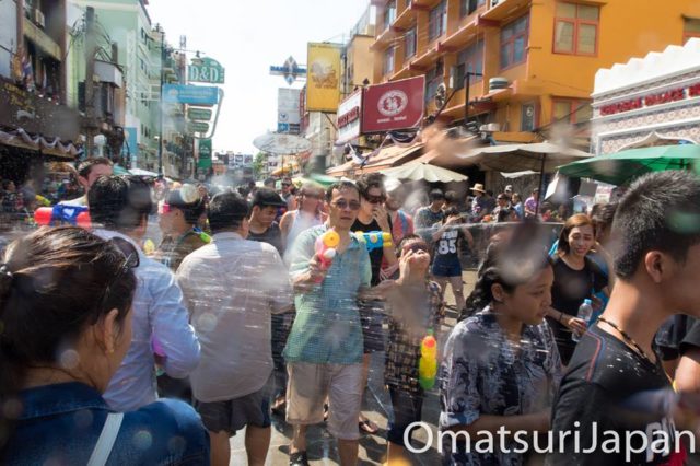 カオサン通りでは、歩くみんなが破壊力抜群の水鉄砲を持ち歩いて誰彼構わずにかけ続けてました。