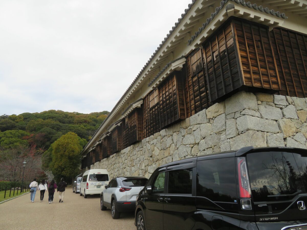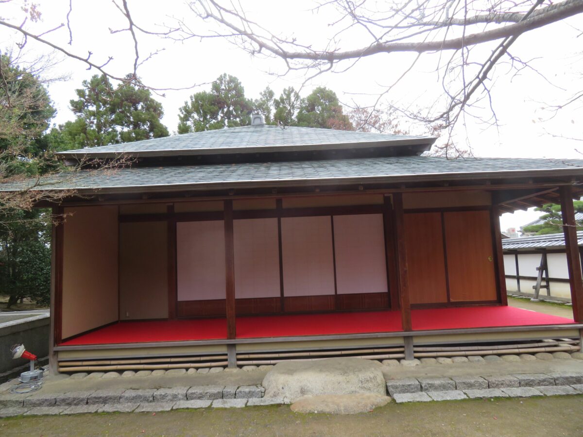 多聞櫓の東に接する聚楽亭では、茶会や句会が行われ、秋には水路際から紅葉で彩られます。