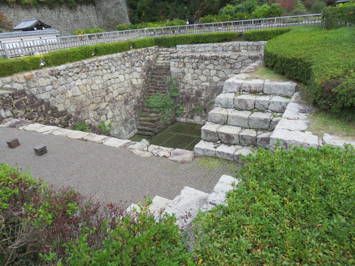 松山城二之丸史跡庭園内に残る大井戸の遺構