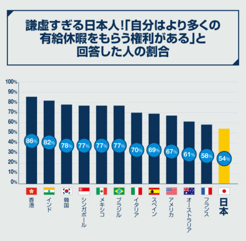 (「有給休暇国際比較調査2018」世界最大級の総合旅行サイト・エクスペディア調べ)