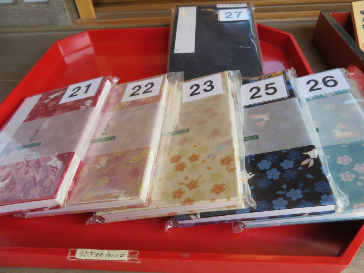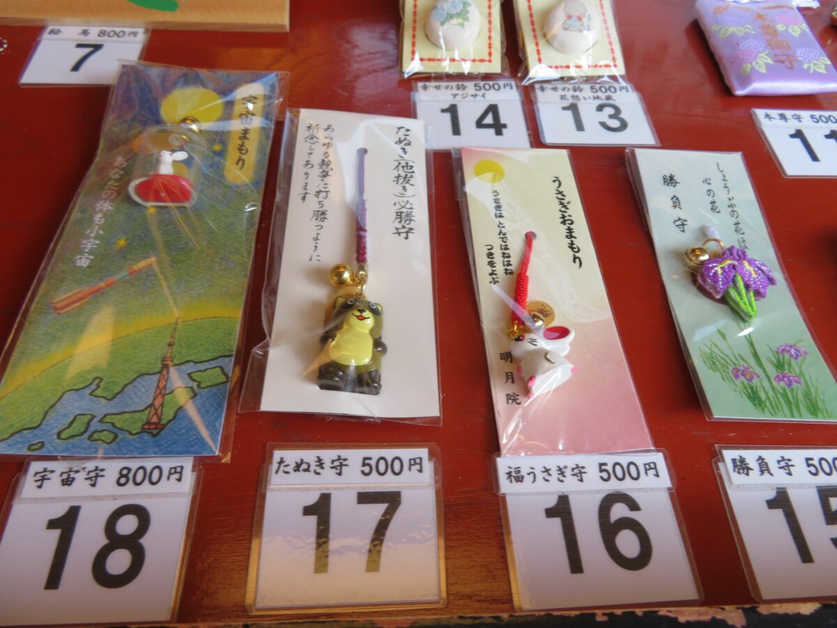 明月院の御朱印受付は、境内中央の方丈の西端に設けられています。窓口には御朱印帳やお守りなど豊富な種類の授与品が並んでいます。