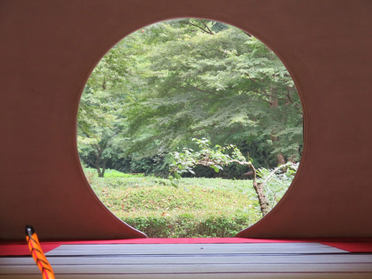 日本の四季の情緒を円く縁どる方丈の悟りの窓