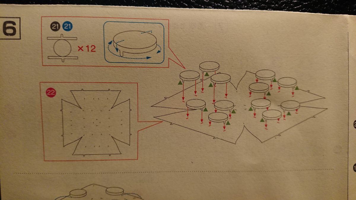 指示にそって曲げ、指定箇所に差し込んでタブを折り曲げたりねじって固定、この繰り返し。