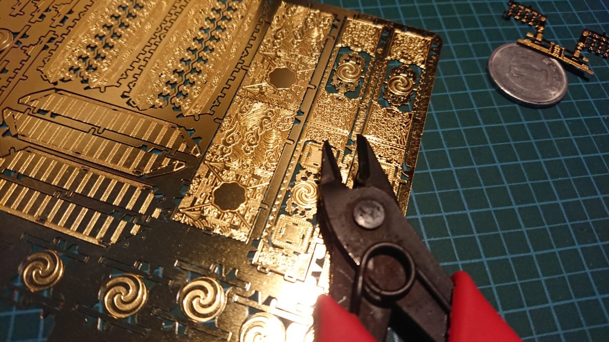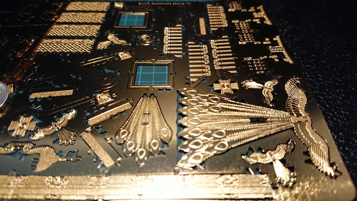 写真の右下あたりのパーツたちだが、群を抜いて彫刻が細かい(ピントが全然あわない!)