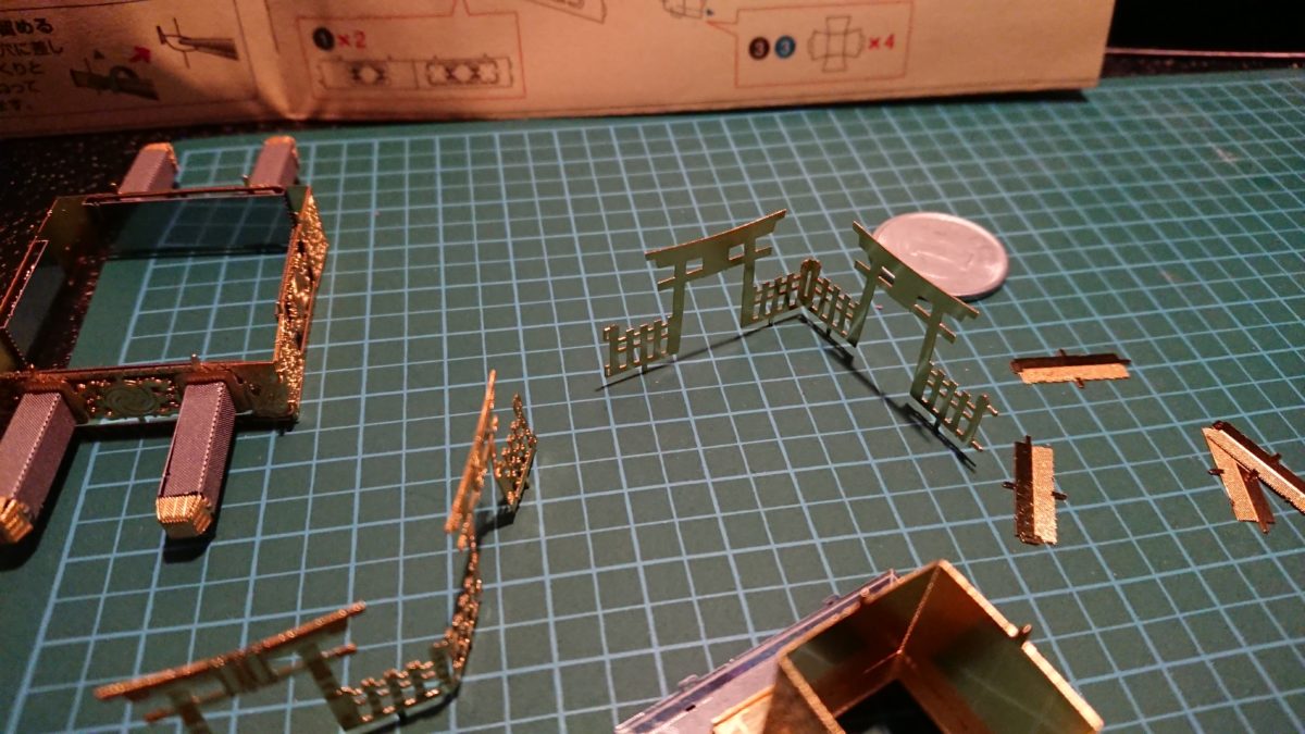 いうだけなら簡単だけど、神輿の脚なんか比喩なしに指先以下のサイズ。これを4本作ってたときはは流石に気が狂いそうになった。