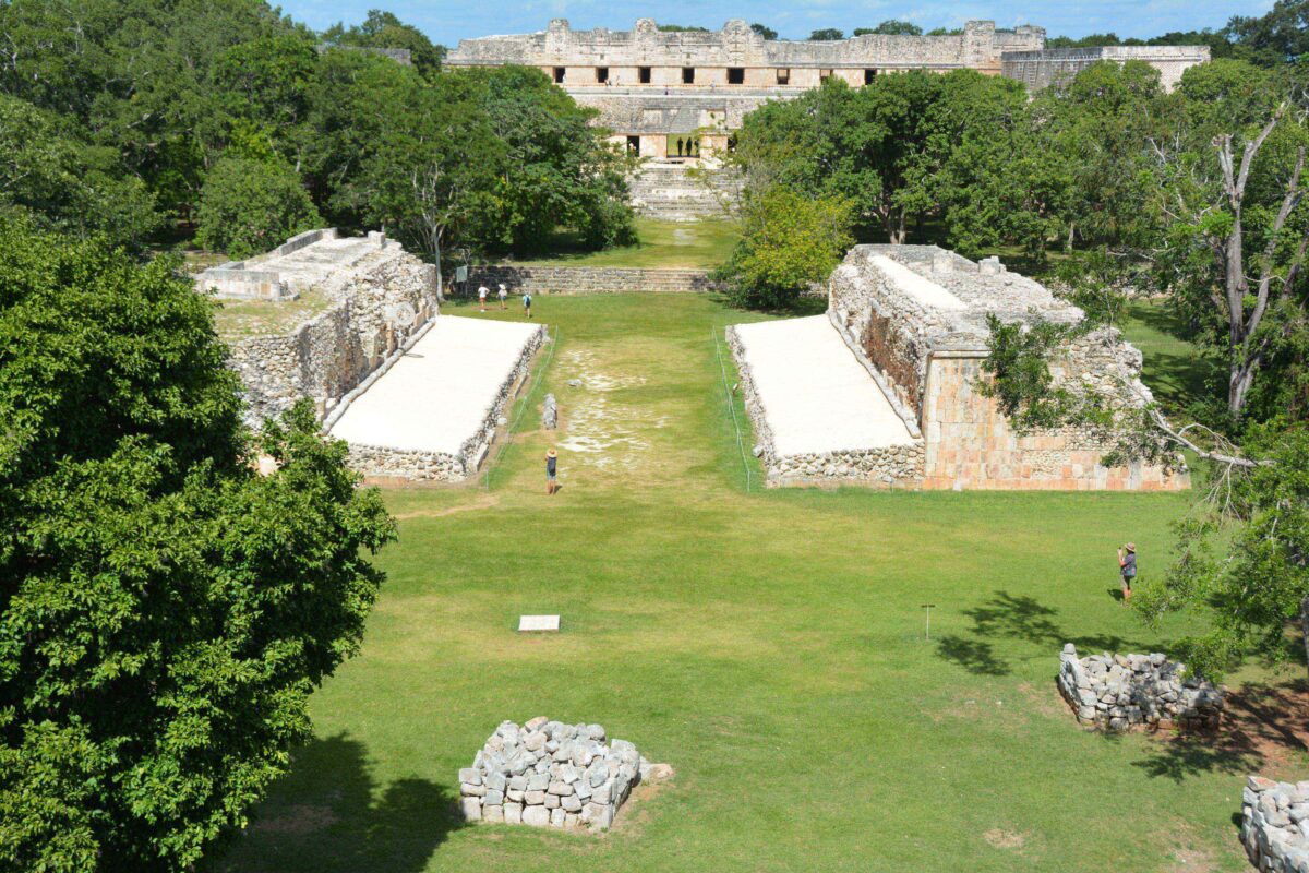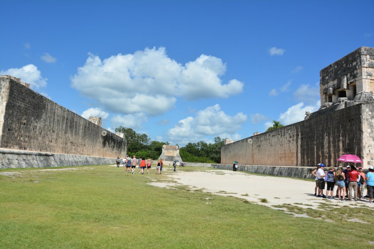 マヤ文明の遺跡にはピラミッド状の神殿に加えて、必ず球技場が設置されているのが大きな特徴です。競技ルールには数種類あったようですが、1チーム数人でボールをパスしながら輪に通して勝ち負けが決められました。ユカタン州の州都メリダのソカロでは毎週金曜日の20:00から、マヤ文明期の儀式的な球技のショーが行われます。