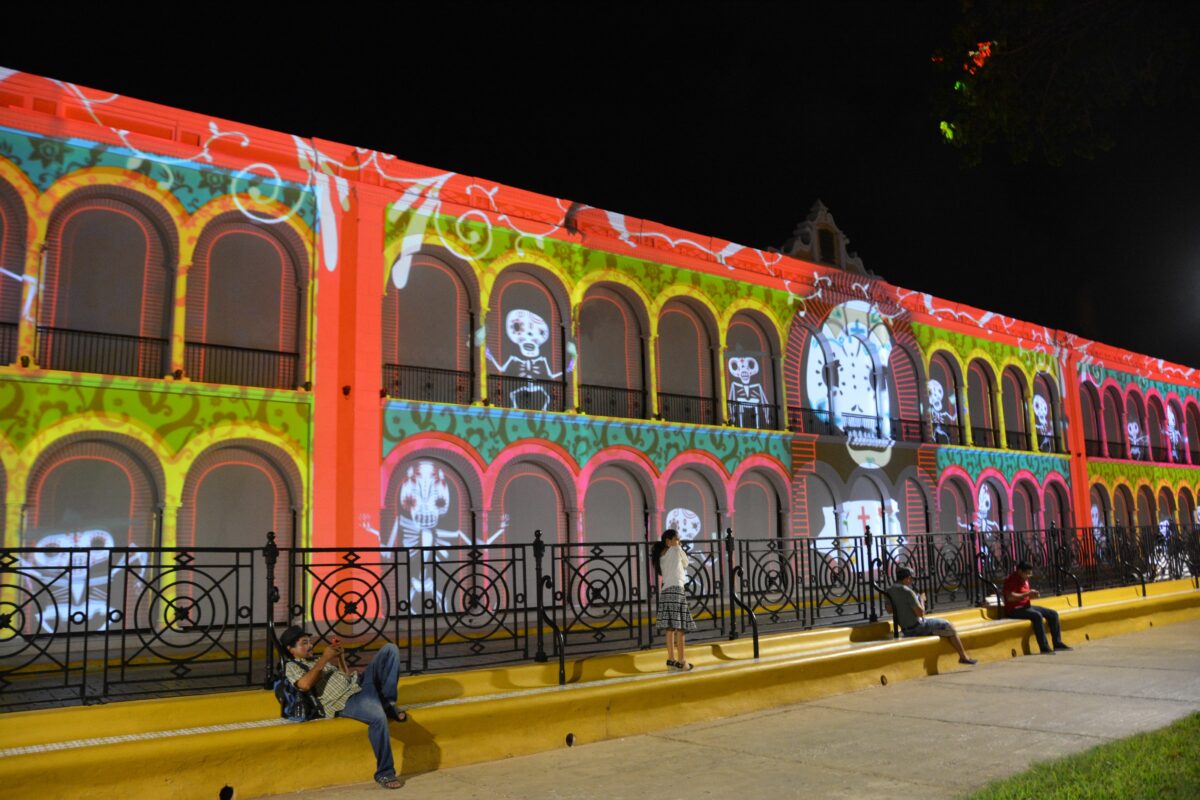 カンペチェの「光と音のスペクタルショー」で紹介される伝統行事の「死者の日」