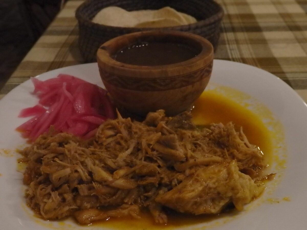「コチニータ・ピビル」の基本的なレシピは、豚肉をバナナの葉に包んで地中に埋めて蒸し上げることです。使用するスパイスやハーブは10種類を超え、アチョーテ、トウガラシ、グアヒージョなどで、風味と味わいを整えます。