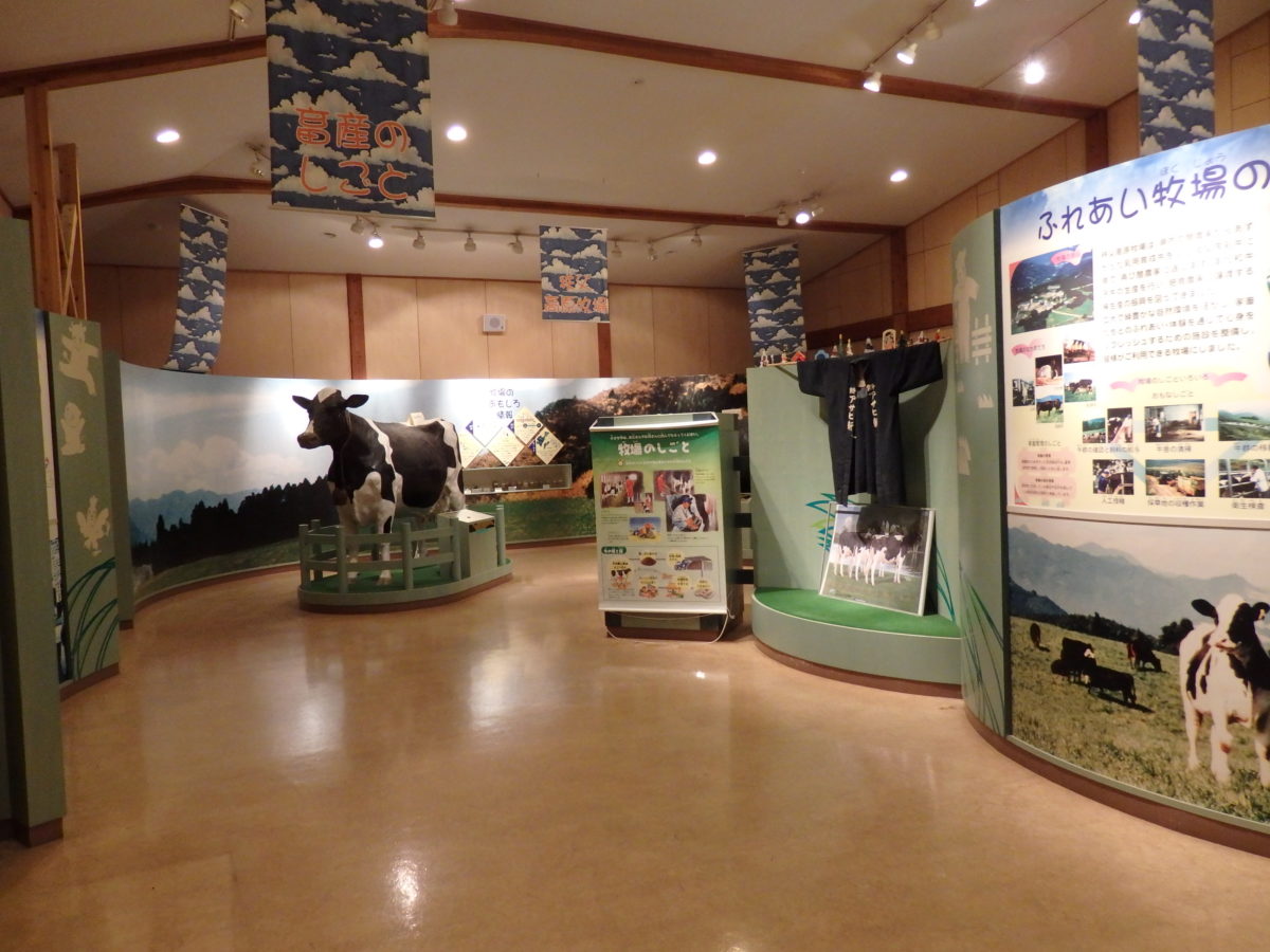 牧場の中央には「モーモーハウス」が設けられ、牧場の役割や畜産、牛乳についての解説が行われています。