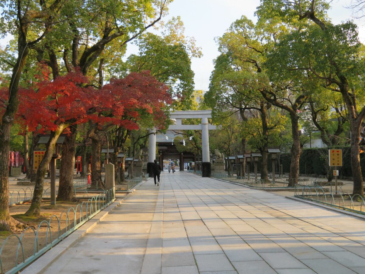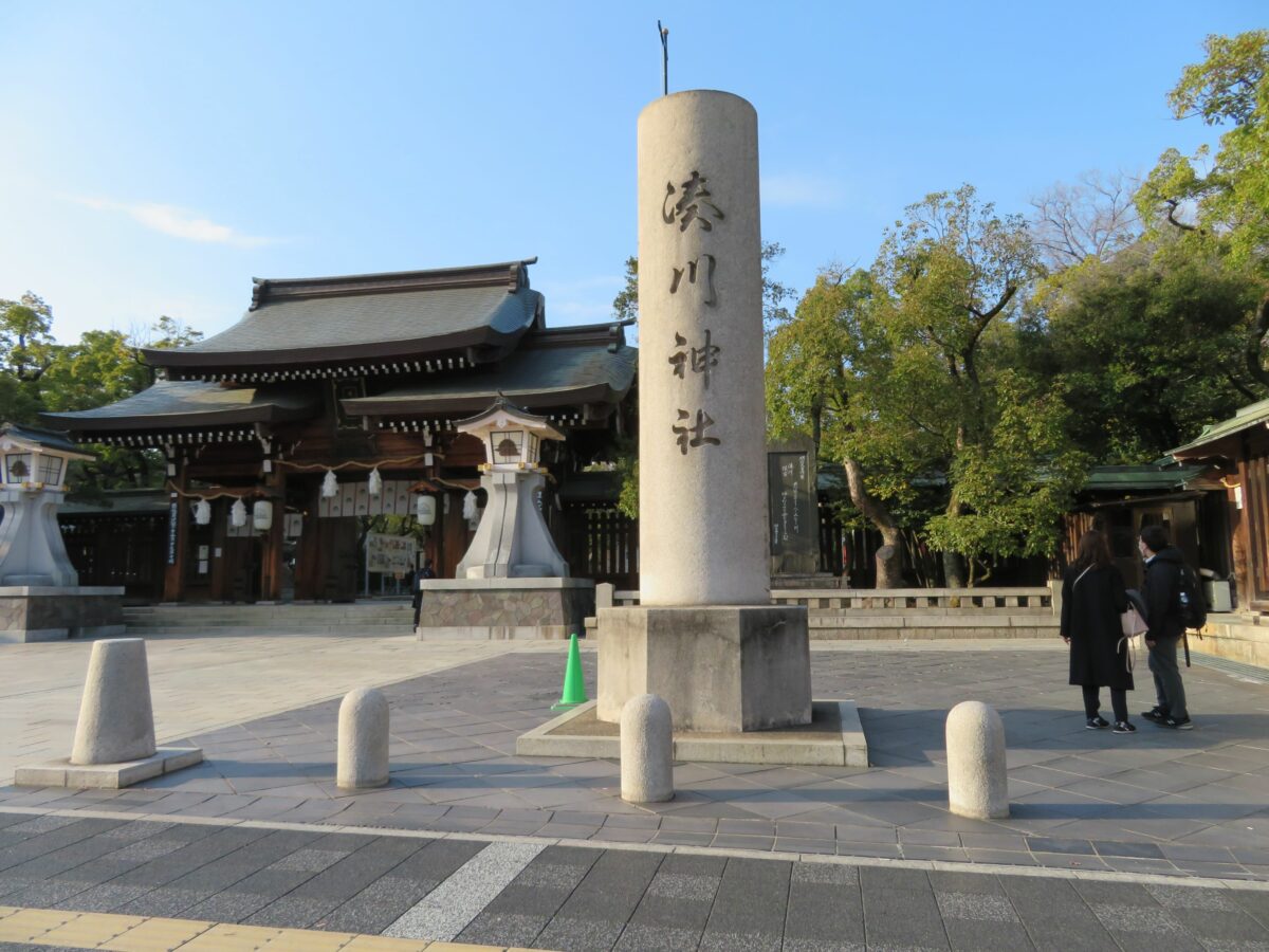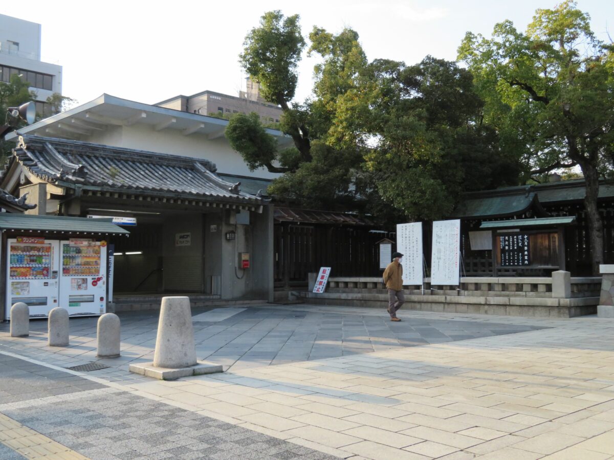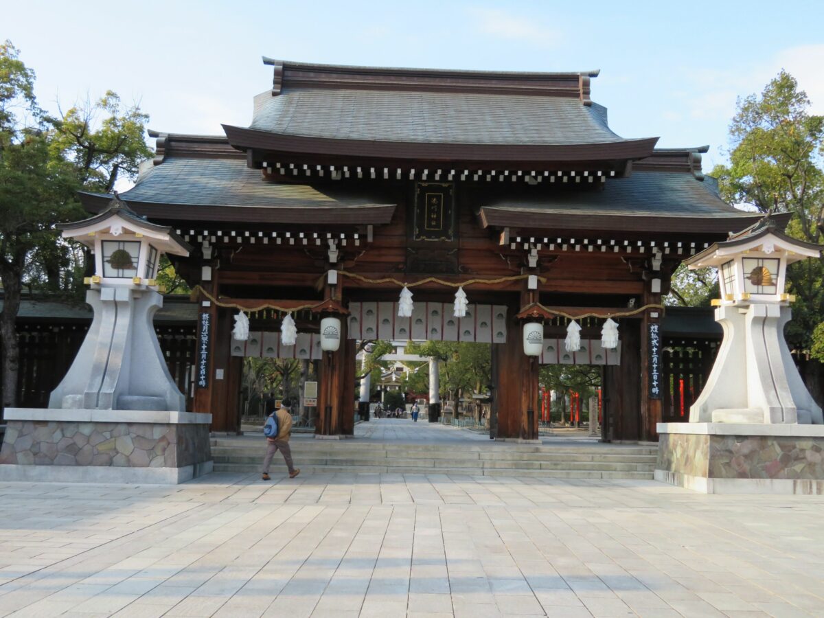湊川神社は、阪神線と阪急線の高速神戸駅の出入口の正面に表神門を構えています。