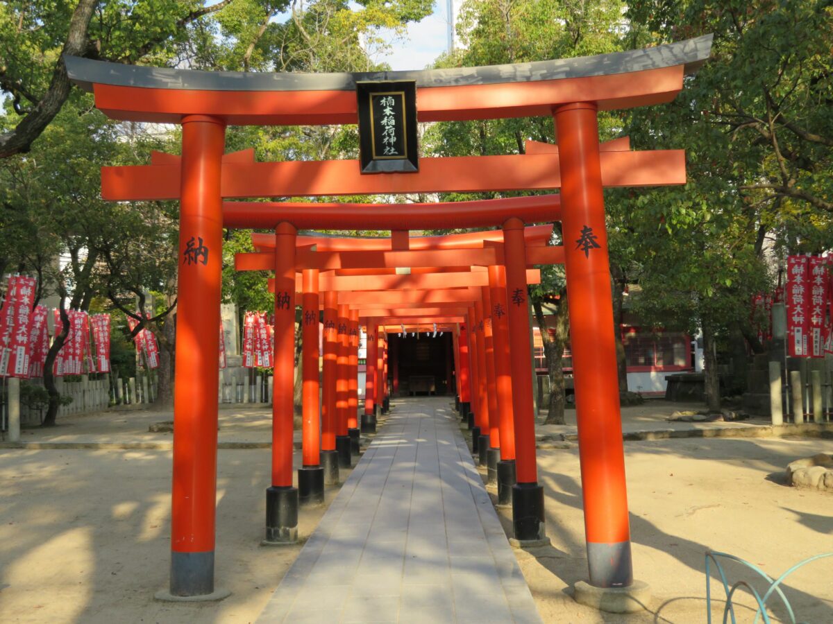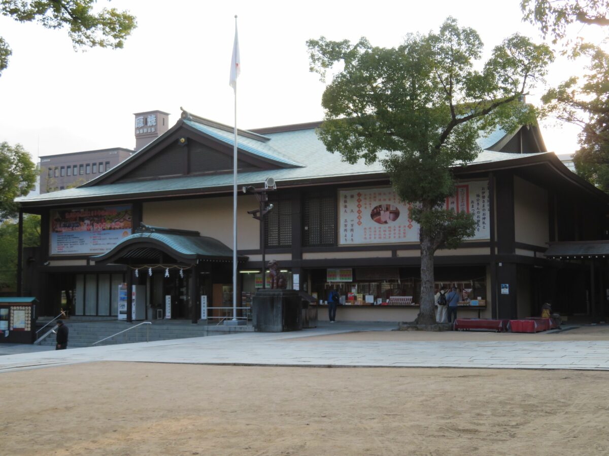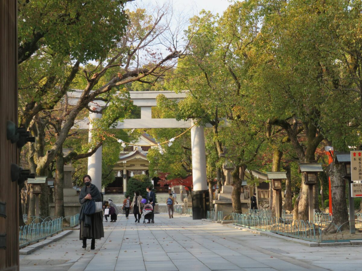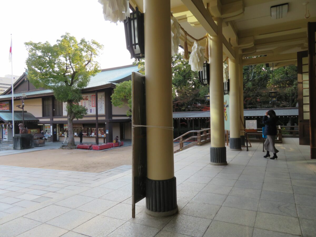 湊川神社は、阪神線と阪急線の高速神戸駅の出入口の正面に表神門を構えています。