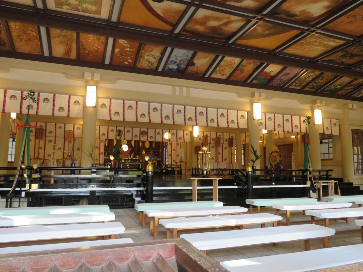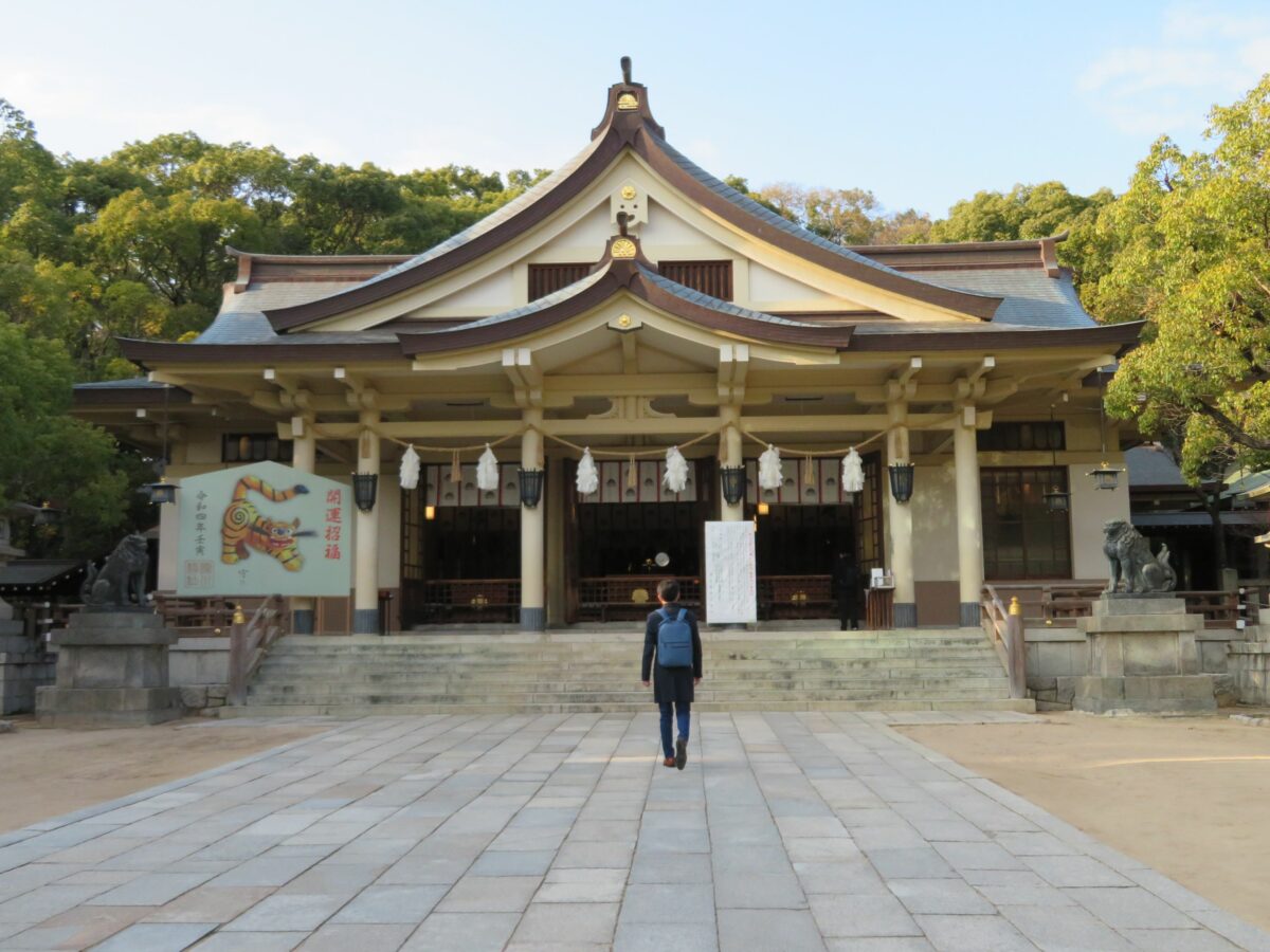 表神門からは北に向かって石畳みの参道が設けられています。石造りの大鳥居を潜れば本社社殿です。
