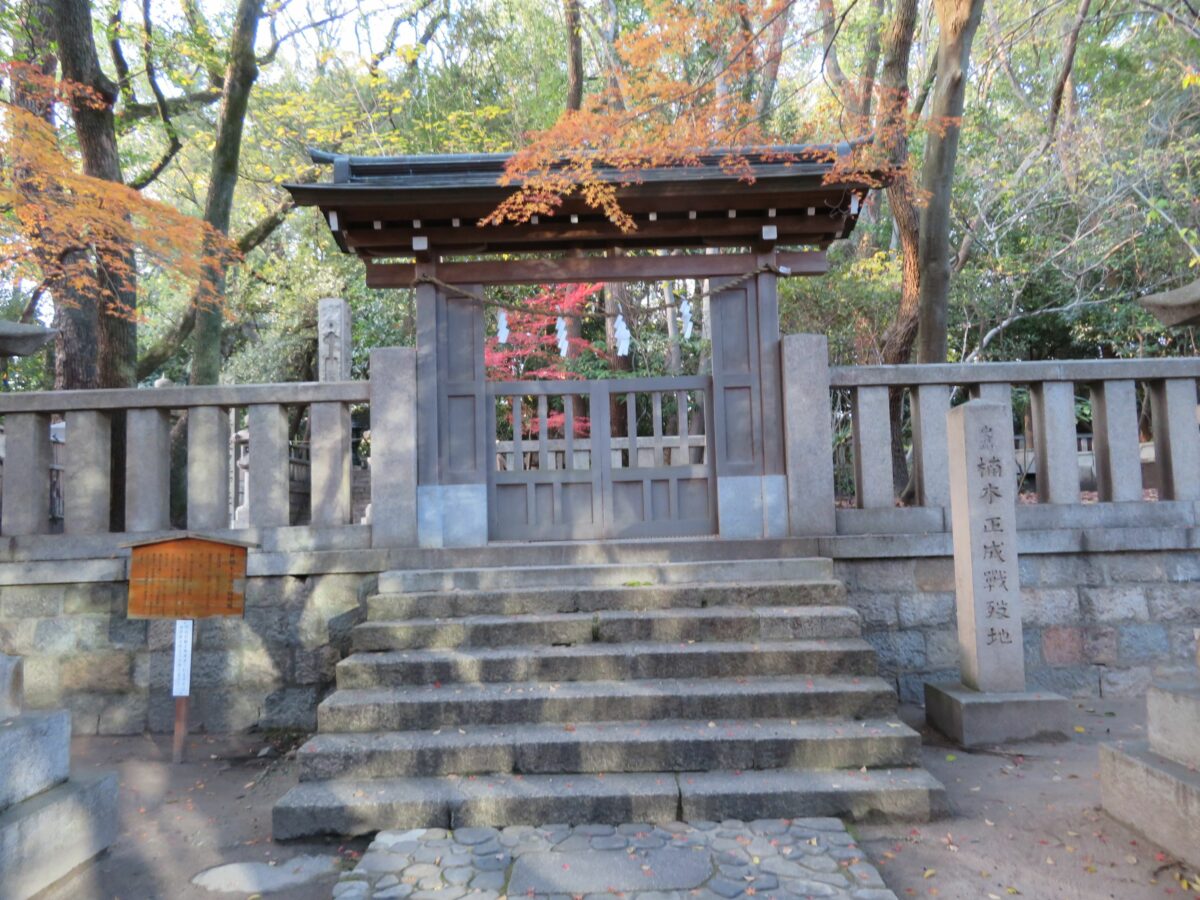 現在、湊川神社が建つエリアは鎌倉時代末期の1336年に、湊川の戦いの合戦場となりました。後醍醐天皇の勅命を受けた楠木正成が、鎌倉幕府の勢力や新たな武家政権を目指す足利尊氏と戦ったのです。ところが、奮戦むなしく戦いに敗れ、湊川の地で自刃したのです。本社社殿の西側には楠木正成戦没地の碑が立っています。