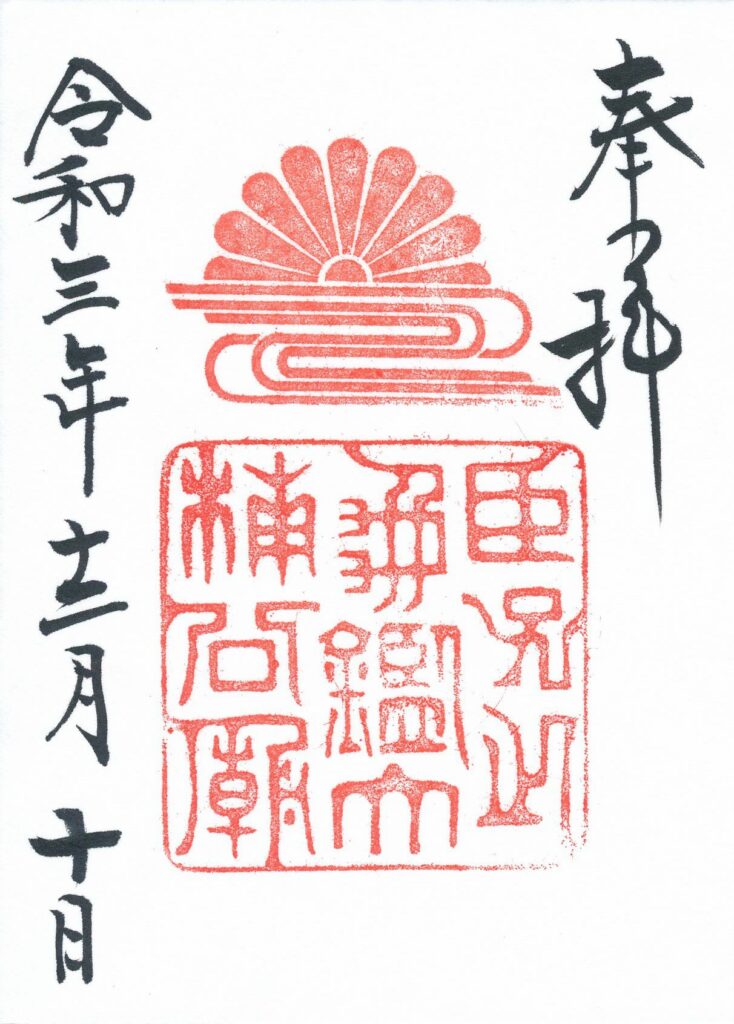 「菊水紋」の下に「臣子之亀鑑大楠公廟」の印が押された御朱印