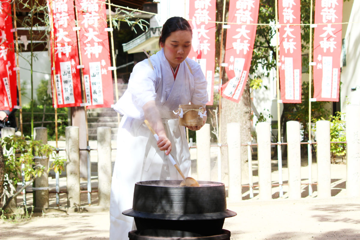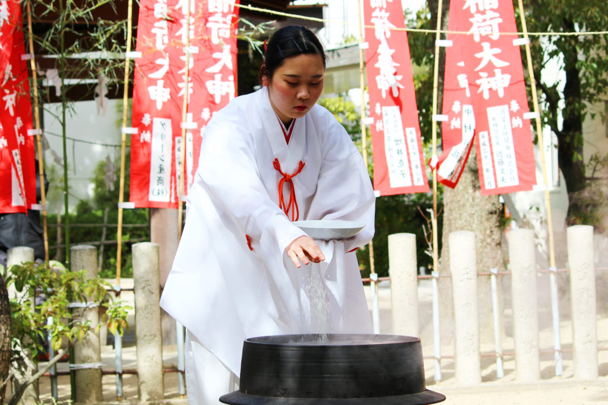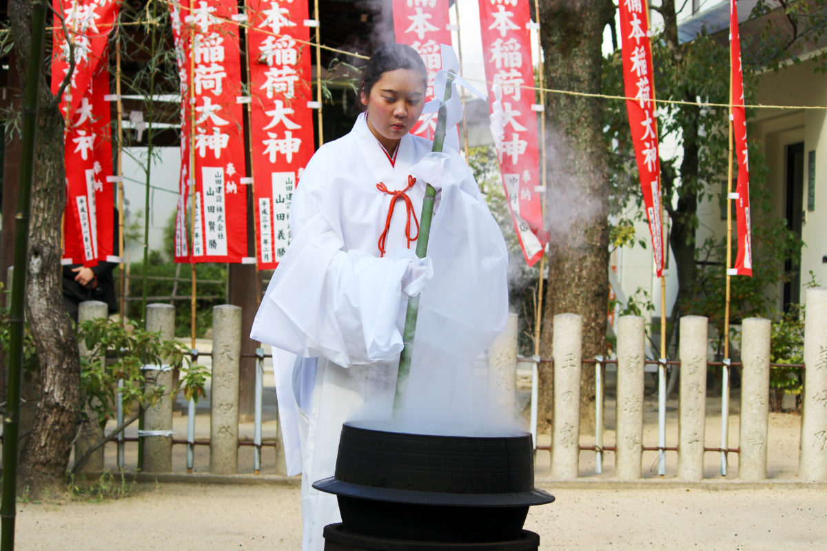 本日は令和初の初午!と言うことで、神戸の湊川神社の初午祭へ行ってきました!こちらは巫女さんによる湯だった釜での「湯立神事」があり、数ある初午祭の中でも独特な儀式を行います。笹から発せられるしぶきは良い香りでした!#祭り #初午 #稲荷 #オマツリジャパン pic.twitter.com/fihWq4JMkN
