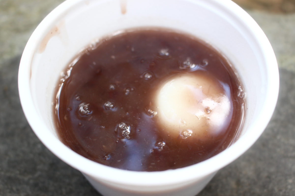 湯立神事が終わった後は、参拝者におしるこのお振舞があるのもありがたいです(お湯は熱いですが、この日は極寒!あたたかいおしるこが嬉しい)。ケガレを祓ってもらった皆さんで食べるおしるこは格別でした!
