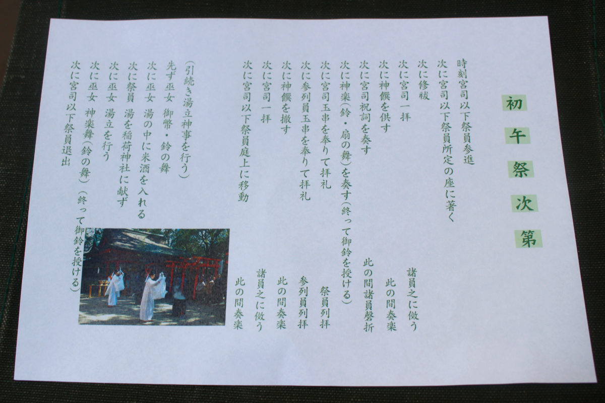 祭事に先立ち、境内ではこのような次第が配られていました。わかりやすくてありがたいですね!