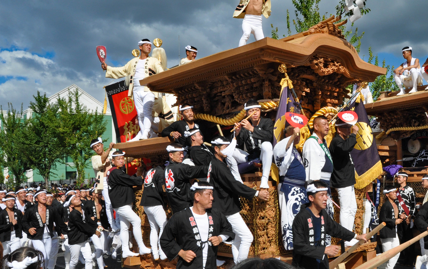 走る車両の上でクールに決める祭りが日本にもあります。「岸和田だんじり祭」です。