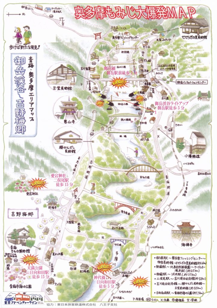 御岳インフォメーションセンターに準備されている「奥多摩もみじ大爆発マップ」