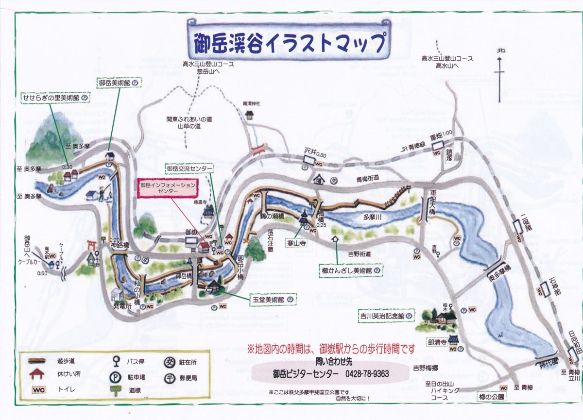 御岳インフォメーションセンターに準備されている「御岳渓谷イラストマップ」