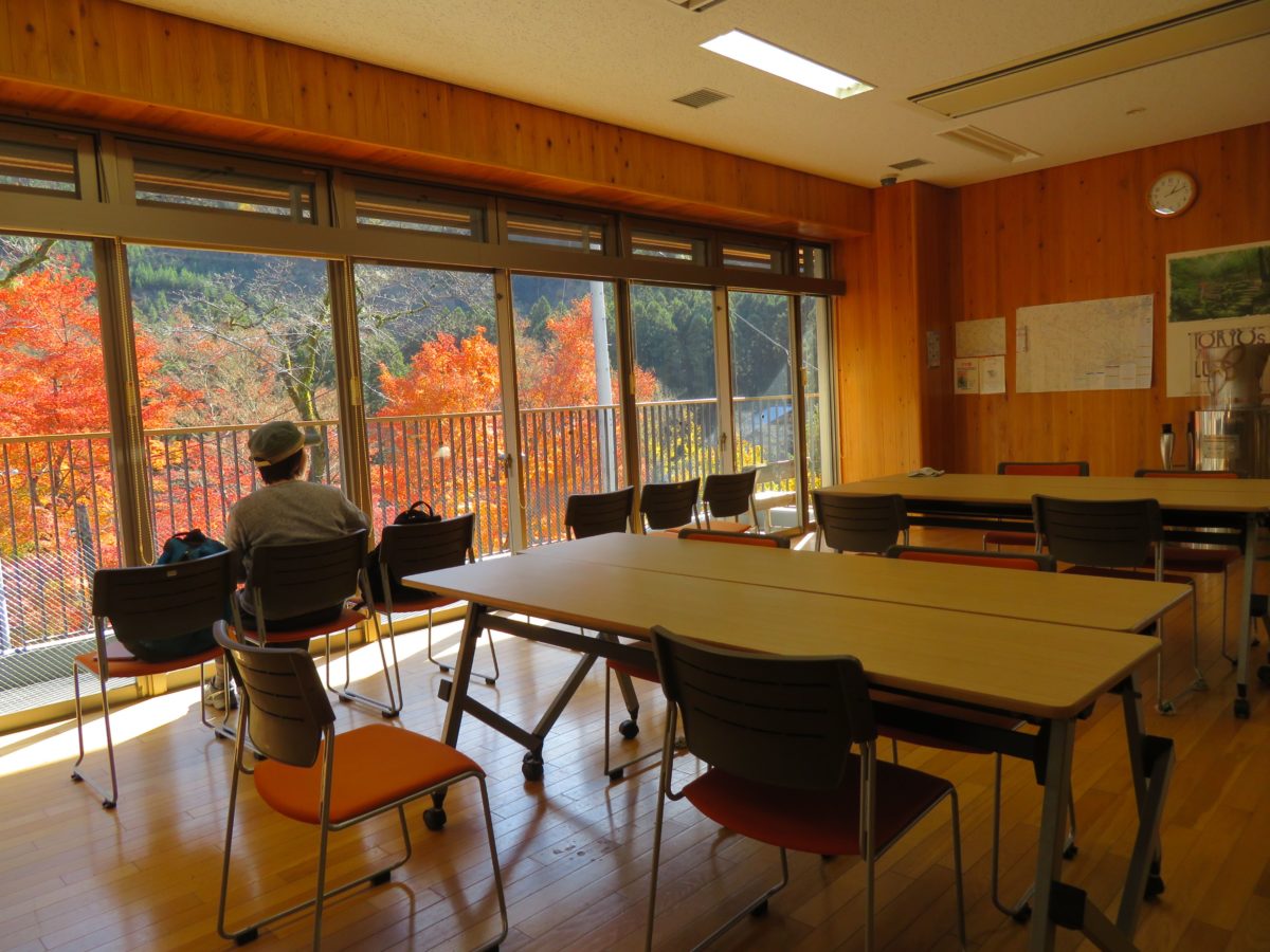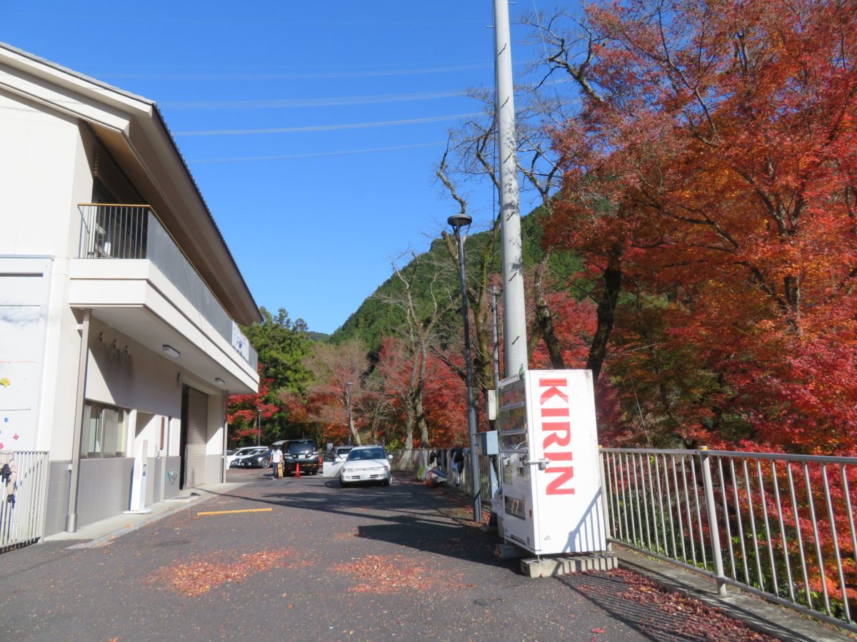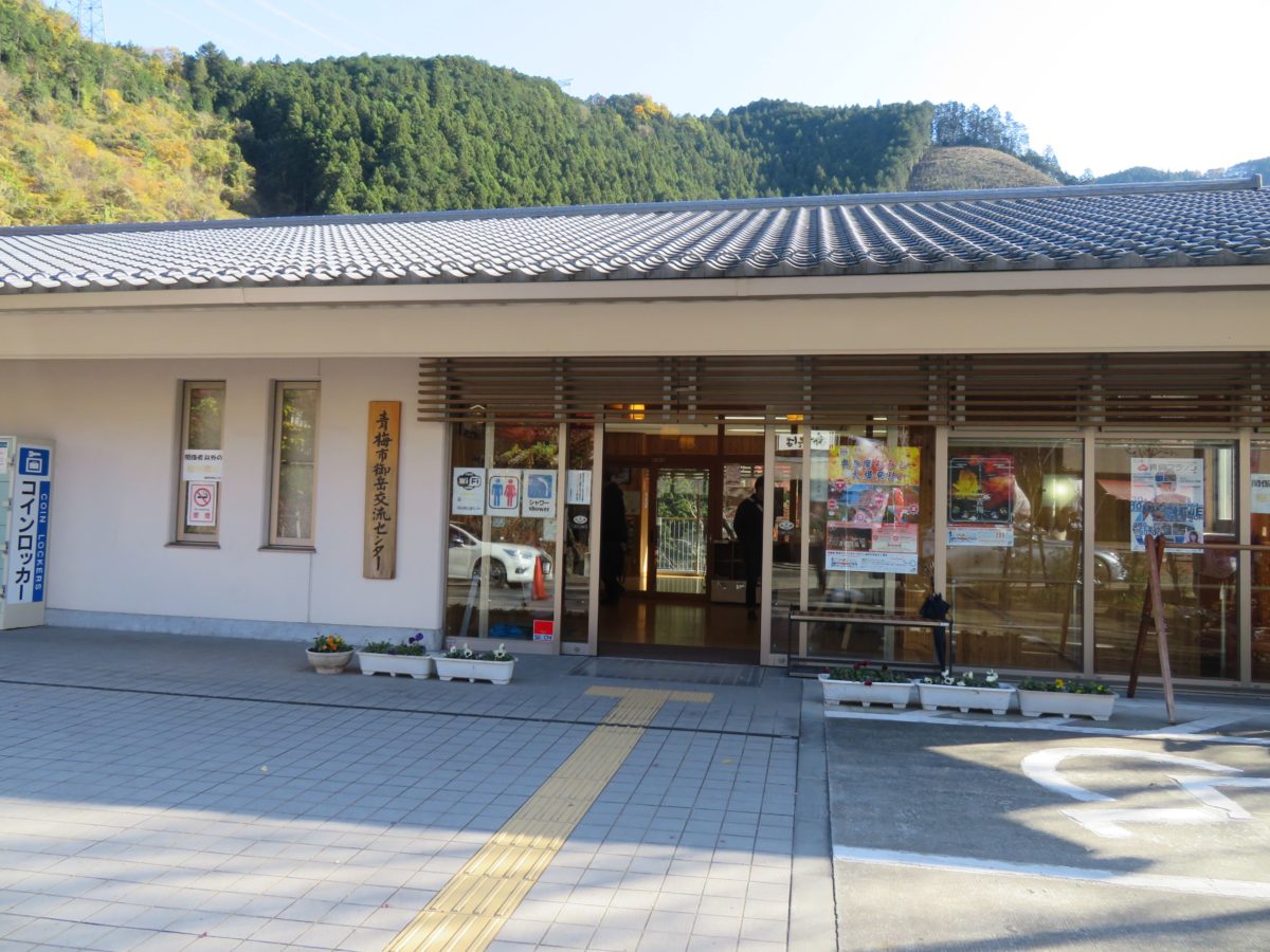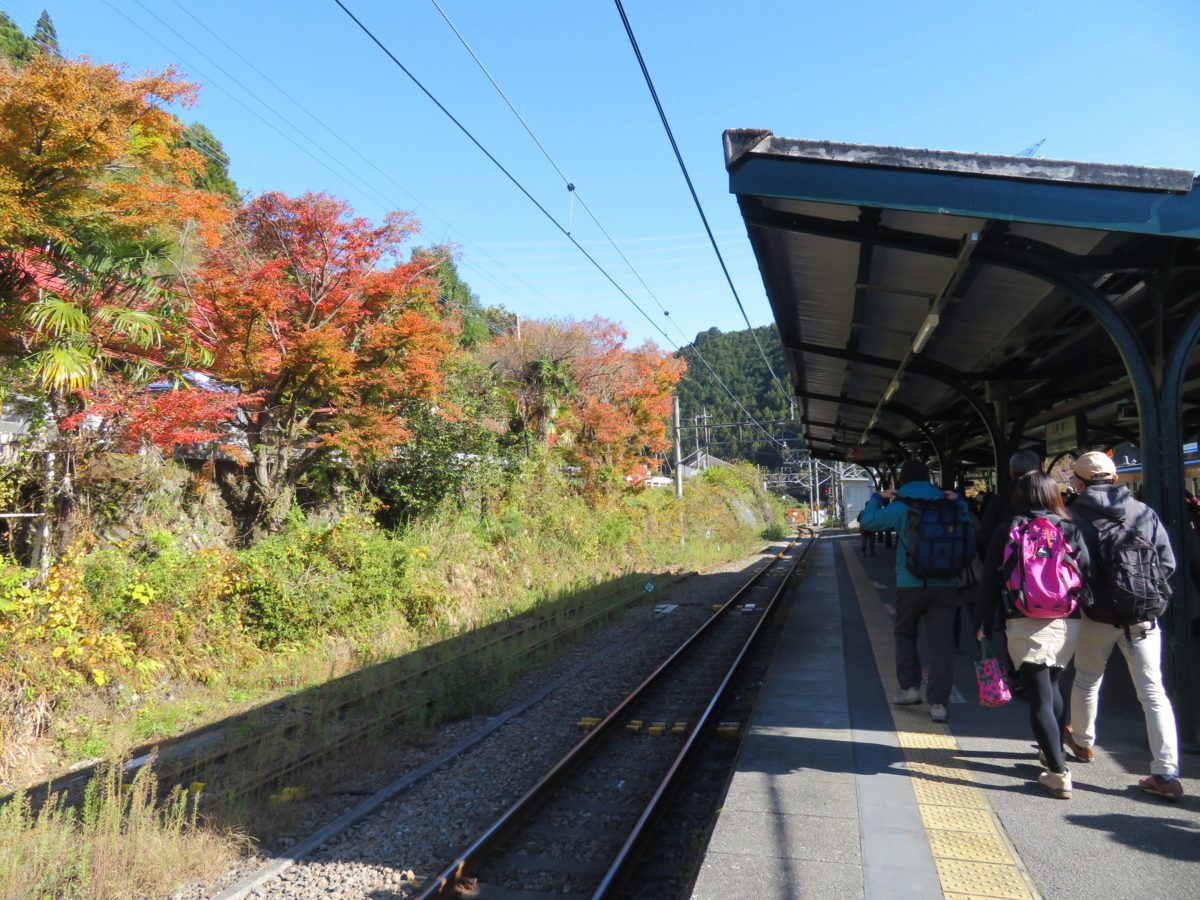 御岳渓谷ハイキングの起点となるのはJR御嶽駅です。紅葉シーズンになると電車が御嶽駅に着く度に大勢の人々が下車してきます。駅舎を出てすぐ左の御岳インフォメーションセンターにはマップが準備されているので、これが紅葉狩りの道しるべとなります。御嶽駅の正面で多摩川に架かる御岳橋から下流に向かって川沿いに遊歩道が整備されています。御嶽駅のバス乗場から遊歩道に入ることができます。バス乗場の東に建つ御岳交流センターからは御岳小橋を彩る紅葉を一望することができます。