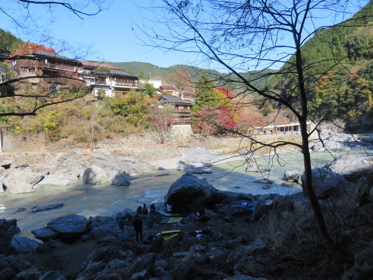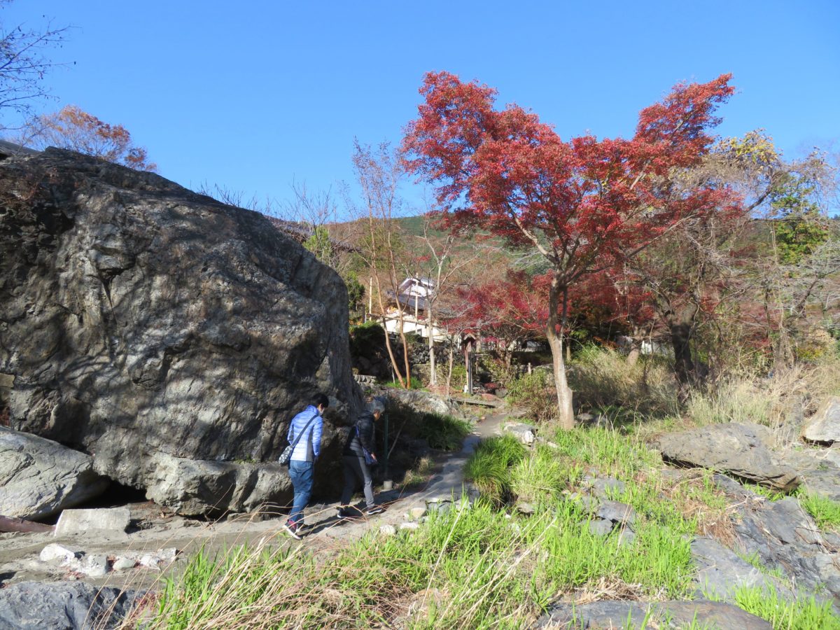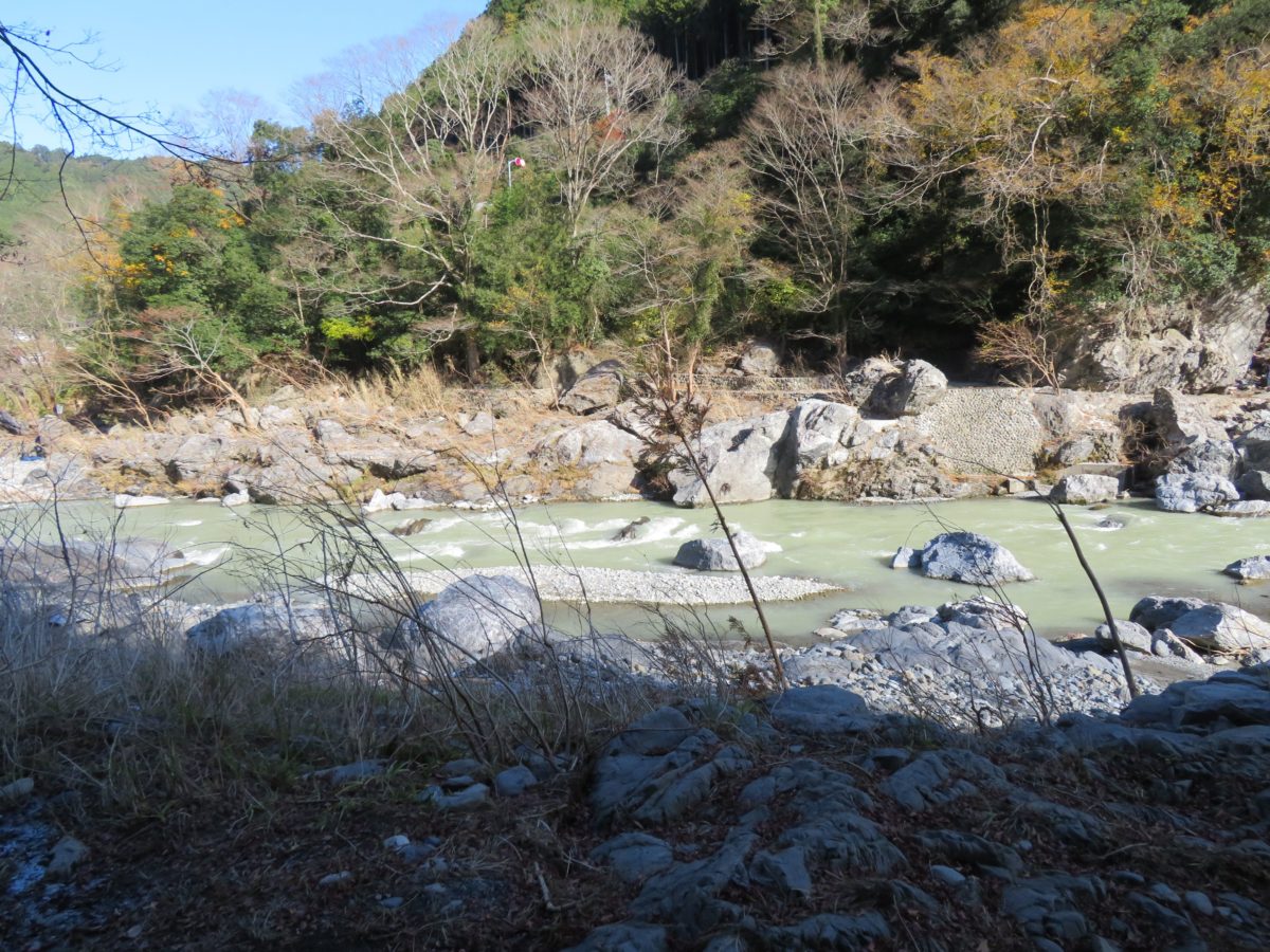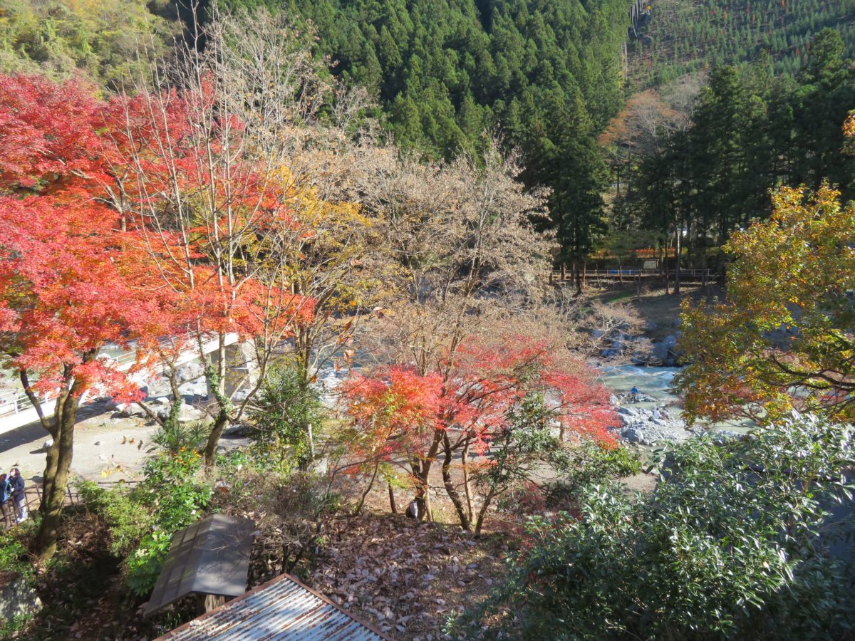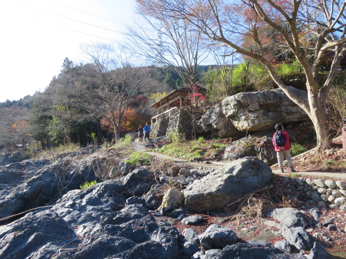 御岳小橋の袂から多摩川に沿って遊歩道を下ります。岩の間を滑るように流れる川の水を追うかのようです。御岳小橋から数百メートルのところに鵜の瀬橋が架かっています。橋の袂は紅葉で染められ、河原に設けられたあずまやは格好の紅葉狩りスポットとなっています。橋の下ではバーベキューをしている人を見かけることもあります。